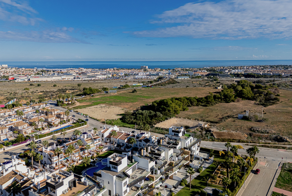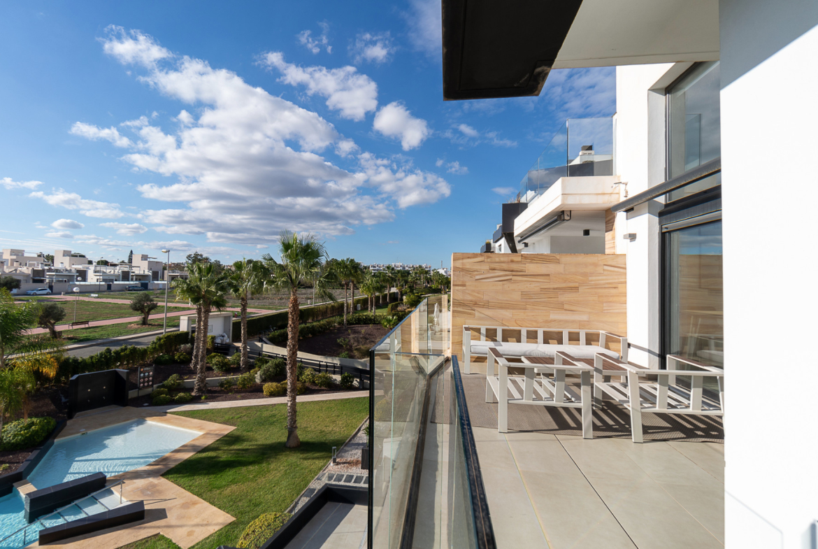 Welcome to this extraordinary duplex penthouse apartment, located in the heart of the prestigious Muna Spa & Resort in Los Dolses. Designed for an unmatched lifestyle, this home features five terraces and balconies facing both sunlit and shaded directions, making it a true retreat. With breathtaking sea views from every room and a seamless blend of modern design and premium amenities, this property is perfect for those seeking something truly special. This thoughtfully crafted home, built by one of the most renowned builders on the Costa, includes an open-plan living area that connects a bright and inviting lounge with a fully equipped modern kitchen. The kitchen features sleek finishes, clever storage solutions, and stylish wooden shutters, while an adjacent utility room provides additional functionality with space for a washing machine and water heater. The apartment boasts three generously sized bedrooms, all with built-in wardrobes. The master bedroom and one other bedroom open directly onto private terraces or balconies, perfect for unwinding in peace. Two elegant bathrooms, one en-suite, are beautifully designed with contemporary earthy tones, adding a touch of sophistication. Step out from the living room onto a spacious terrace complete with an awning, providing a cool escape on hot days. The upper level offers another terrace featuring an outdoor kitchen, barbecue, and dining area – ideal for hosting meals while soaking in the stunning views.The standout feature of this stunning penthouse is the expansive roof terrace. Here, you can relax in the jacuzzi, lounge in the seating area, or sunbathe in privacy while enjoying panoramic sea views. This space is perfect for summer evenings, alfresco dining and entertaining. Located at the stunning Muna Spa & Resort, built to an exceptionally high standard by one of the most renowned builders on the Costa with stunning communal areas including an impressive communal pool, indoor heated pool, sauna , gym and immaculate landscaped gardensSituated within walking distance of restaurants, shops, and supermarkets, the apartment offers unparalleled convenience. Walking to the local amenities of the commercial area of Los Dolses, plus the renowned La Zenia Boulevard shopping centre, with its vast array of stores and entertainment options, is just minutes away, while stunning beaches and top-tier golf courses are a short drive from your doorstep. Contact us today for your viewing