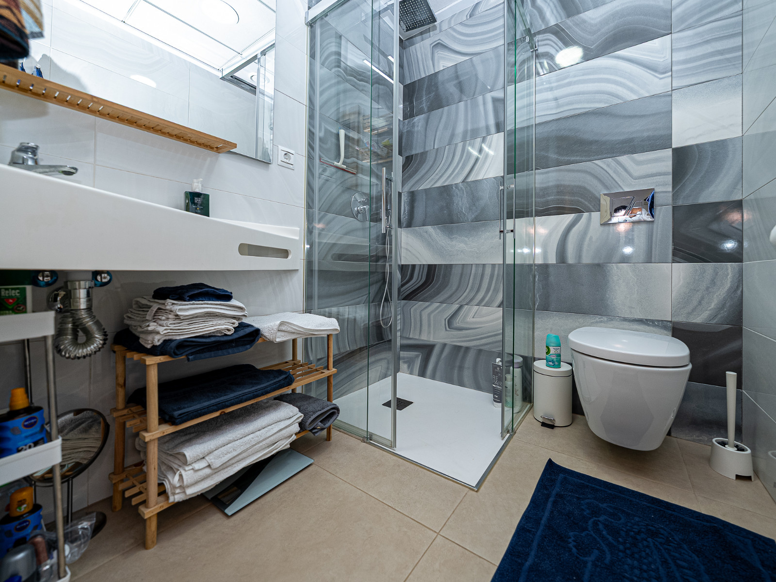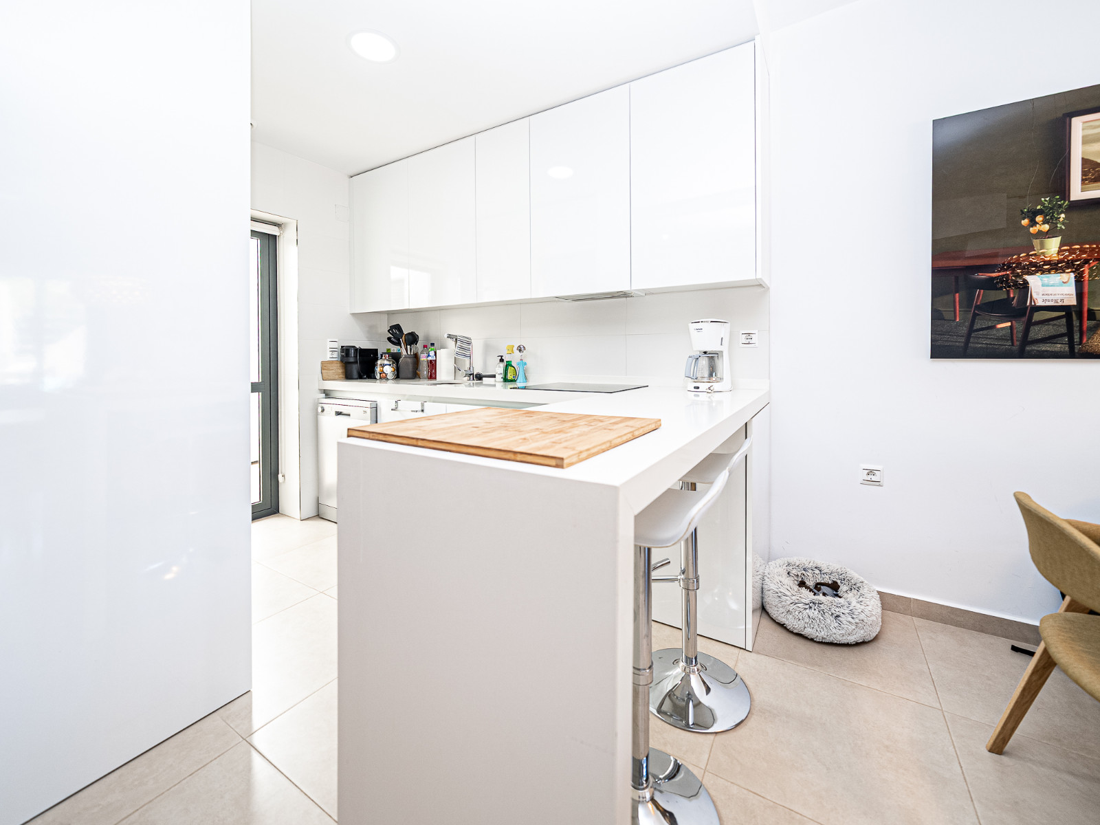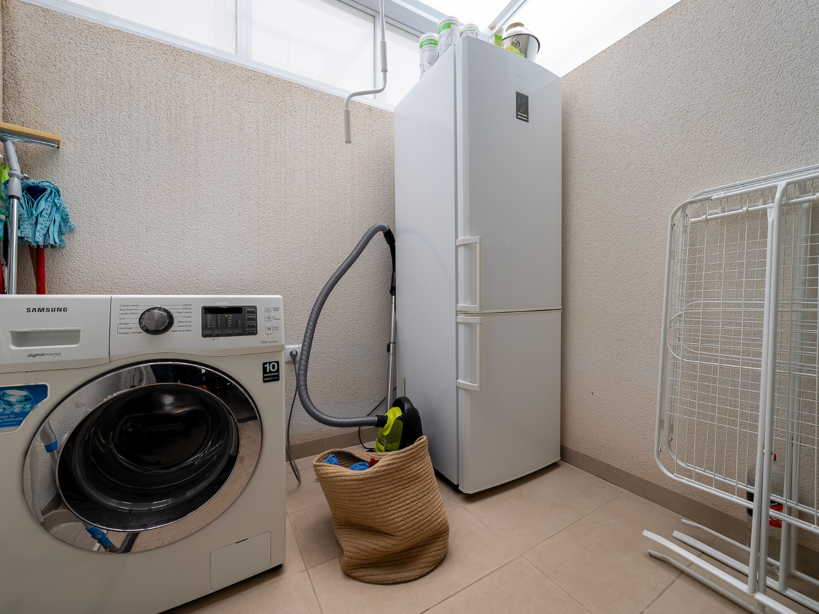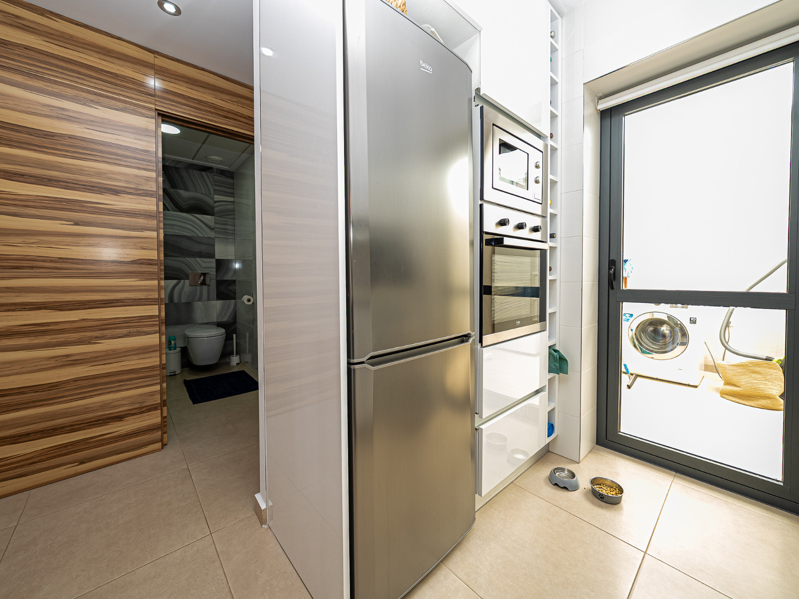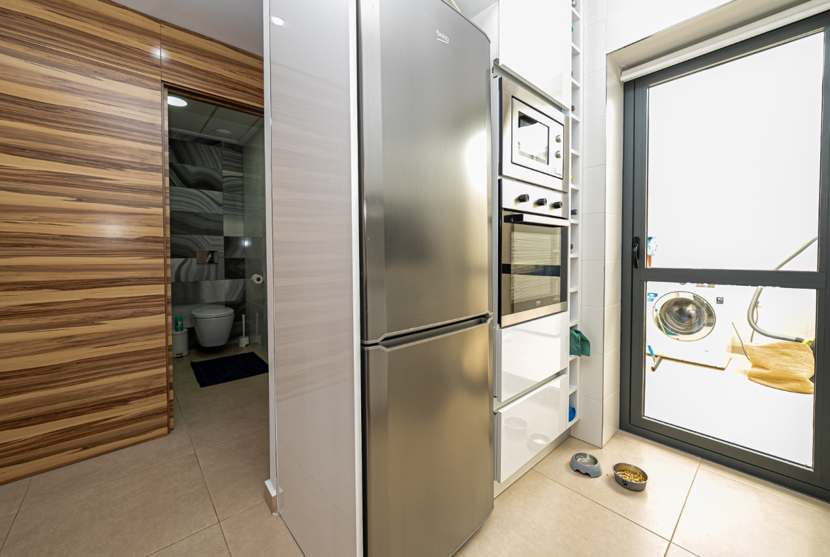 Located in the desirable area of Los Dolses, this well-presented townhouse is set across three levels and combines modern design with practical living. The main floor offers a bright open-plan living and dining area with a contemporary kitchen, an adjoining utility room with a fitted roof, and direct access from the living room to a terrace with an electric awning. The home comprises three double bedrooms and three bathrooms. The spacious underbuild, with heating cables, extra air conditioning, and direct access to the garage, is currently used as an additional living room and bedroom, adding valuable versatility. Steel railings have been fitted along the stairs for added safety. Outdoor living is equally inviting, with a private solarium, terraces overlooking the communal pool, and landscaped green areas within the community. The property is conveniently located within walking distance of local supermarkets, cafés, and restaurants. La Zenia Boulevard shopping centre is only a short bike ride away, while the Blue Flag beaches of the Orihuela Costa can be reached in just a few minutes by car or a pleasant walk.