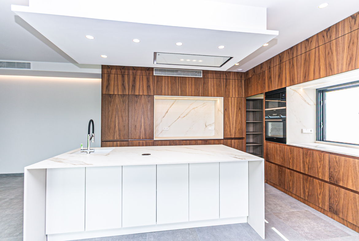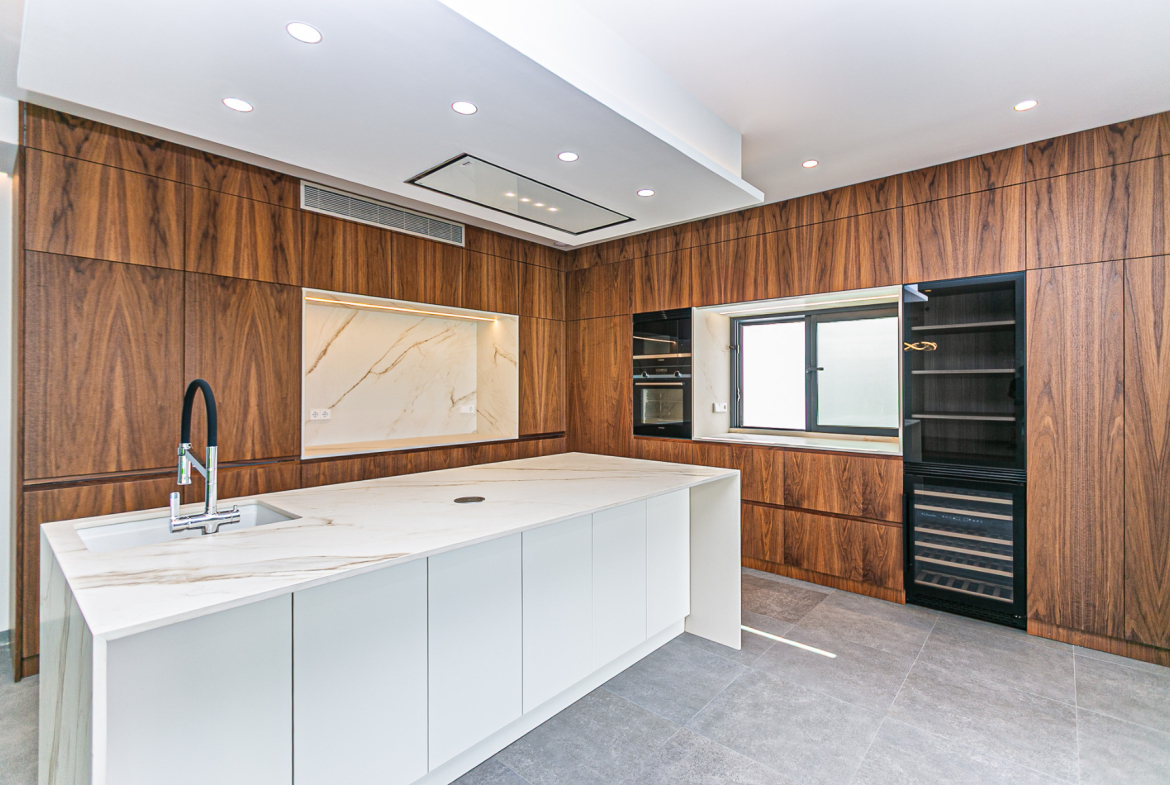 Designer kitchen with premium appliances, invisible under-counter kitchen system and hidden pantry.