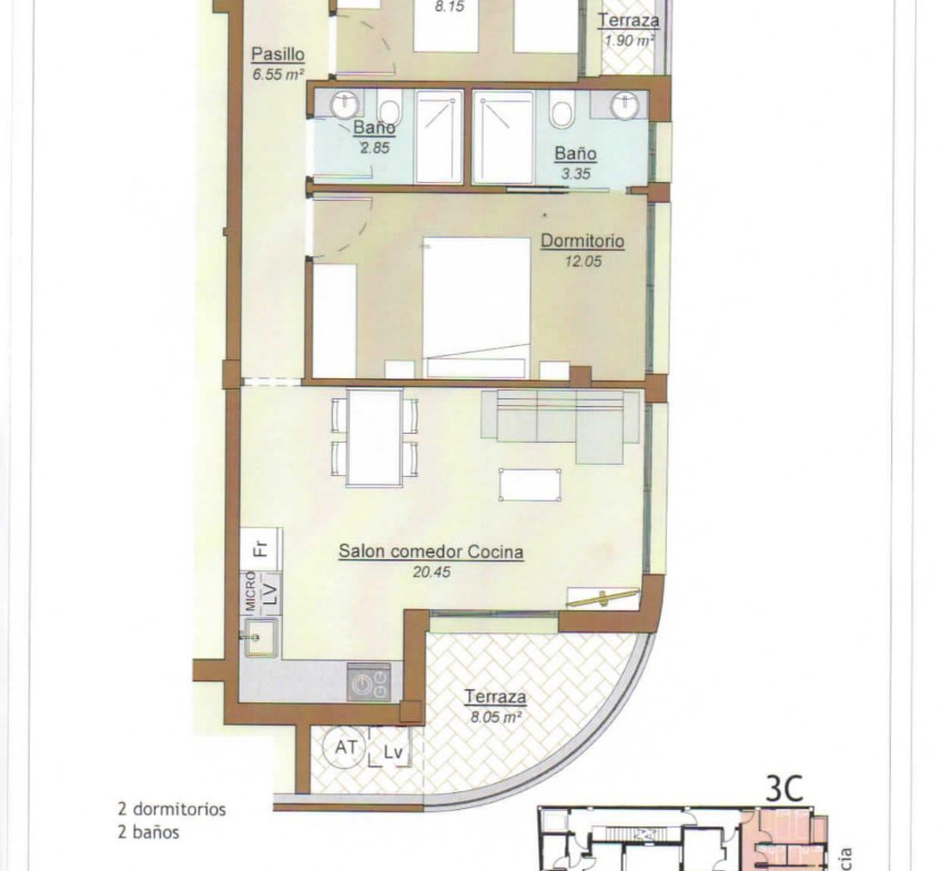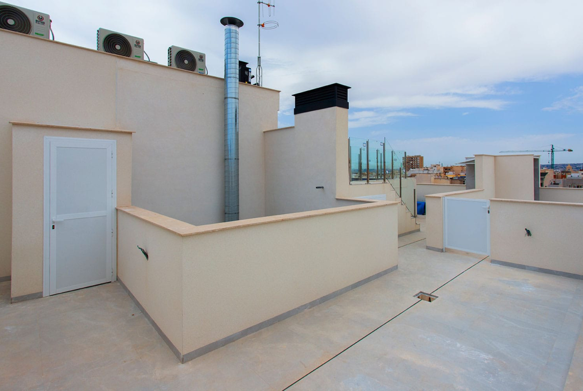 New build apartment for sale in Torrevieja. The apartment is located on the 3rd floor, and it offers 2 spacious bedrooms, 2 bathrooms (one e-nsuite), an open-plan living and dining area and a modern kitchen. The complex offers a public roof terrace with communal pool for its residents. Centrally located just a few hundred metres from the sandy beach. The promenade and local amenities are also within walking distance. Contact us for more information.
