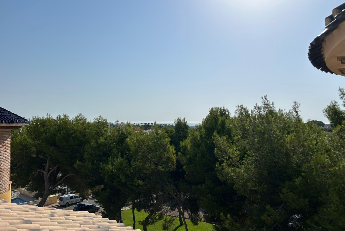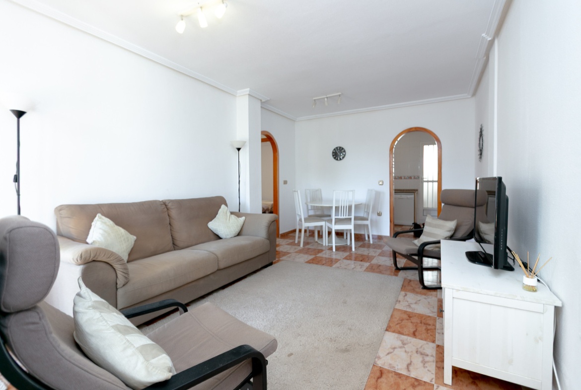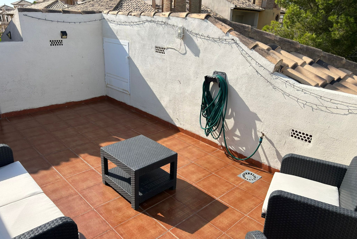 Well presented top floor, penthouse apartment with solarium, located in the popular Pinada Golf 2 complex in Villamartin. The apartment occupies a super corner position, giving it plenty of natural light and open views. The penthouse offers 2 double bedrooms with fitted wardrobes, full family bathroom, spacious living and dining area with direct access to a private balcony overlooking the communal gardens. The separate kitchen is fully fitted and includes a utility room for additional storage. A key feature of the apartment is the private rooftop solarium, which provides ample outdoor space, additional storage and open views across the surrounding area, including distant sea views. Sold as seen in great conditioning ,with white goods, air conditioning and much more. Set in a peaceful urbanisation the community is well maintained and offers landscaped gardens, communal parking and swimming pool for residents. Located easy walking distance to local amenities including the Villamartin Golf Course and Villamartin Plaza. Please note this is a top (second floor) apartment with no lift access and therefore would not be suitable for those with mobility issues. Contact us today to view this well presented and located home.