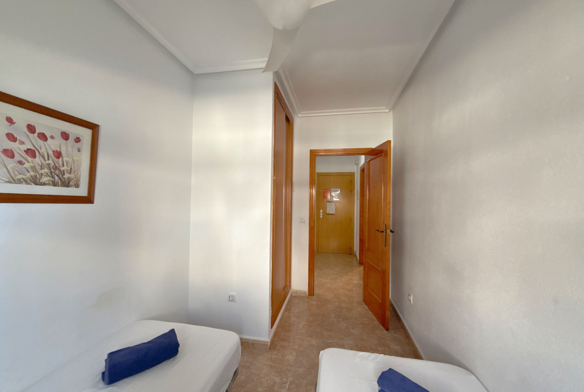 This is a fantastic opportunity to own an amazing apartment set in the lovely Playa Marina 2 complex on the Cabo Roig strip. It is a 2 bedroom 1 bathroom 2nd floor apartment which comes fully furnished with ac and a nice balcony with sea views,the apartment also comes with an underground parking bay. Playamarina II Aparthotel is situated in the heart of the Cabo Roig ‘Strip’ which is famous for it’s Blue Flag Beaches and wonderful climate throughout the year. The complex also has a fantastic communal pool and snack bar area and also a very helpful reception area that will help you with the renting out of your apartment which will contribute towards and expense and upkeep of your new holiday home. This is a fantstic investment opportiunity so dont be late.