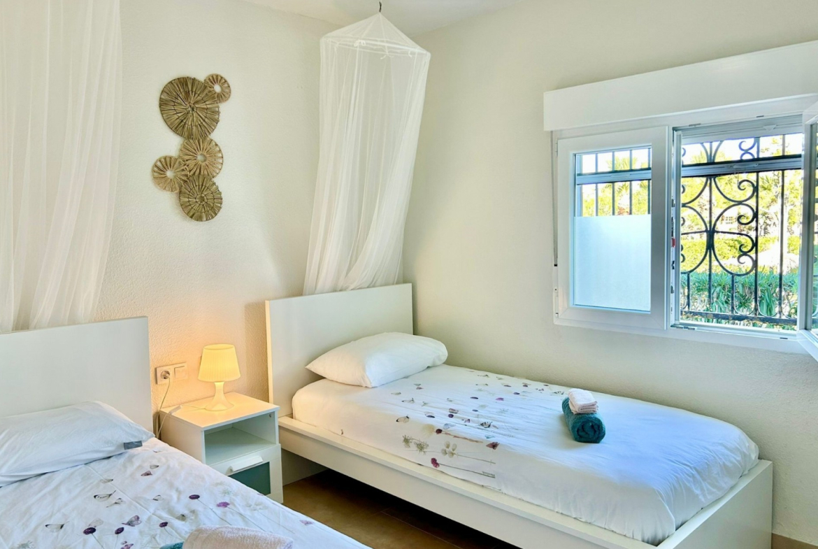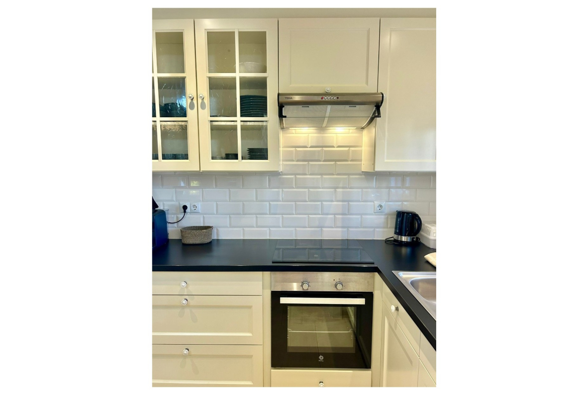 Wow, this one really is wow! A ground floor, corner apartment with a nice tiled garden next to the pool and park. And in immaculate condition sold fully furnished. Many extras like a sleek pellet burner, glazed in terrace and this one it’s the expensive glass that fully opens up with no posts. Double glazed windows throughout and new floor tiles.