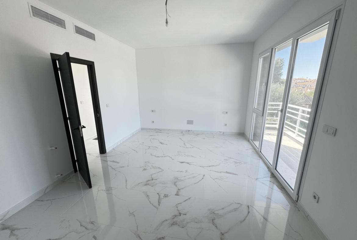Large patio doors lead from the lounge out to the rear garden with terrace area, private pool and outdoor lounge/bathing area. Ideally situated this villa is within walking distance to all amenities.