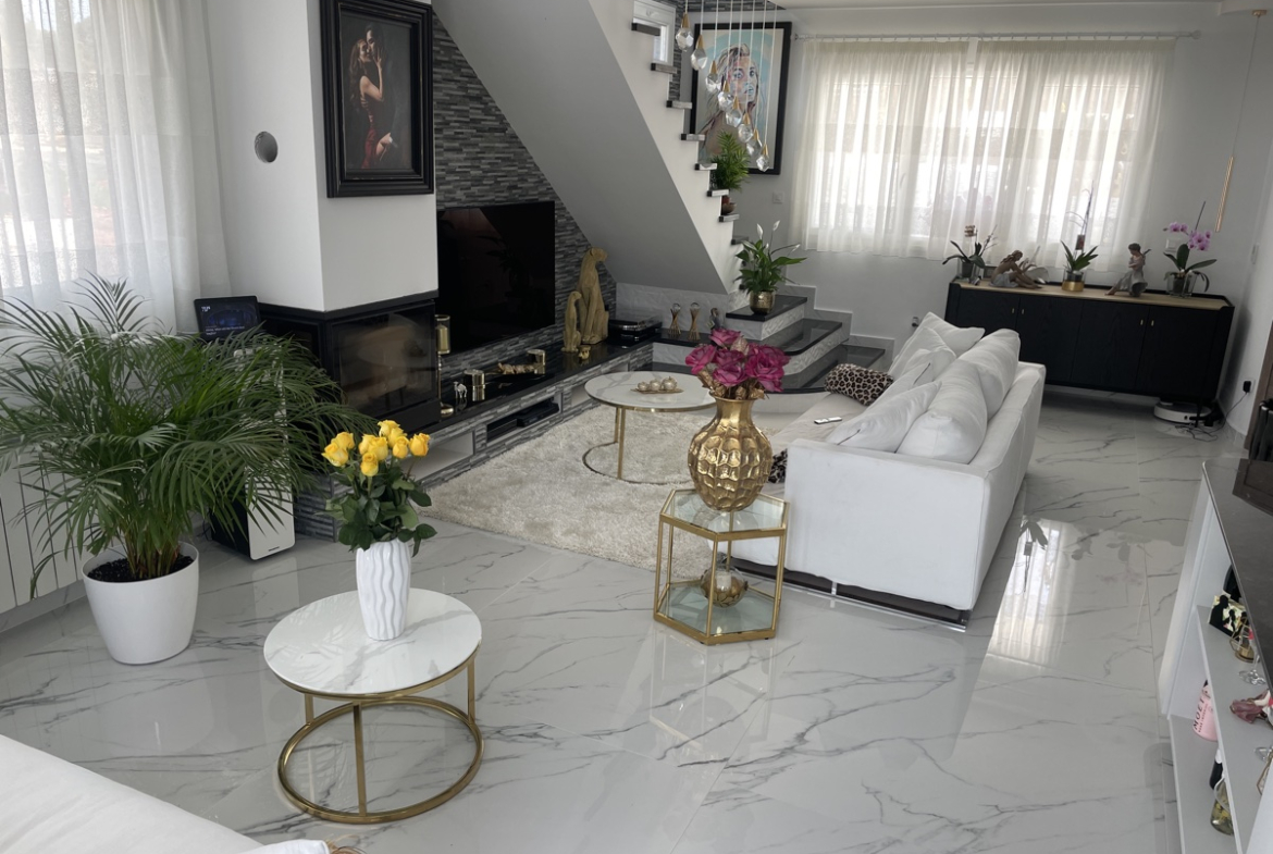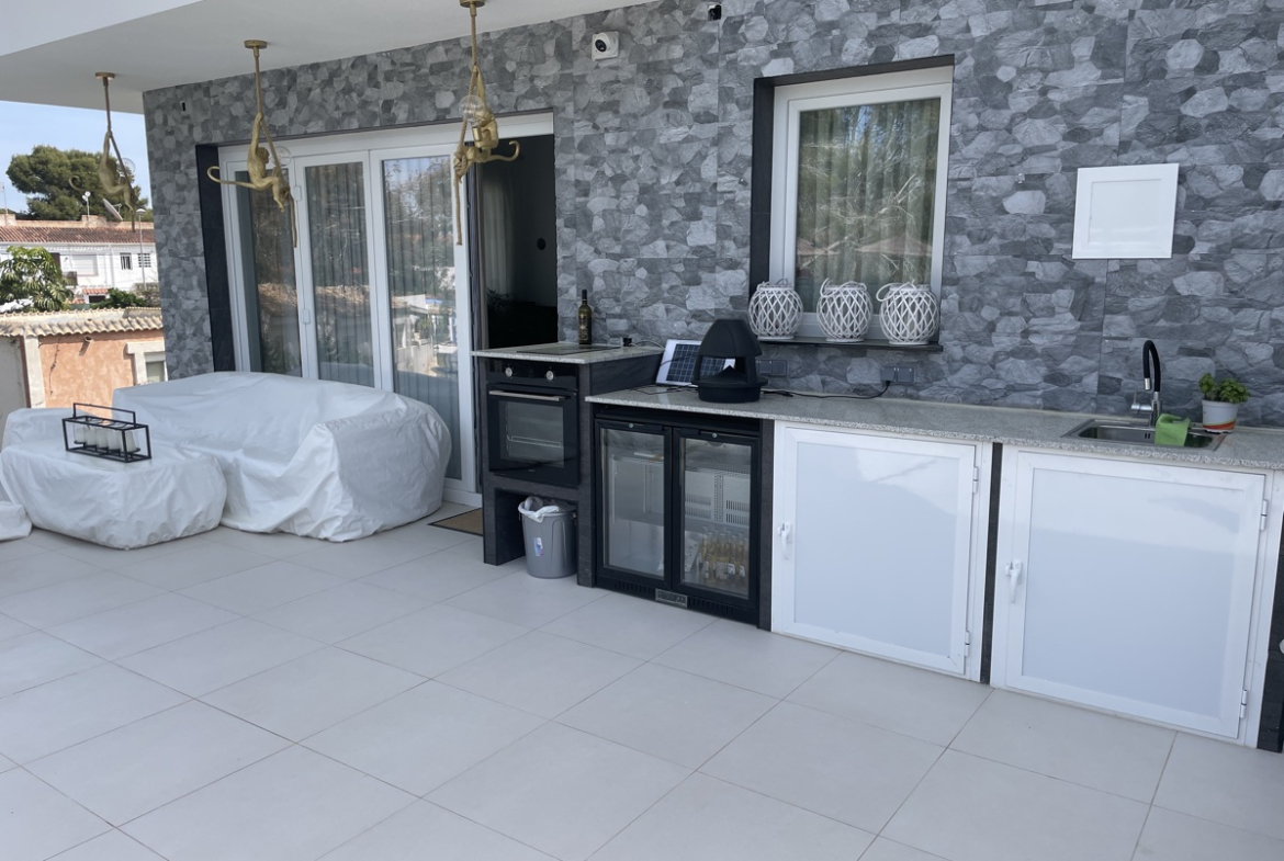 Finished to a very high standard, including Italian designed and manufactured kitchen and bathrooms, beautiful communal pool and spacious garden with off road parking. Oil filled central heating, air conditioning, multiple storage rooms, outdoor kitchen and space for an gym.