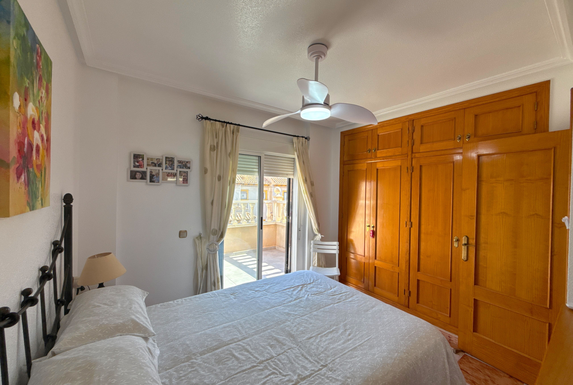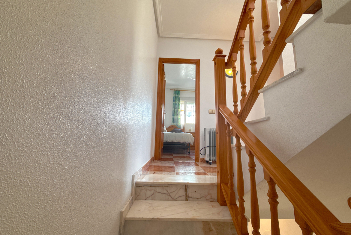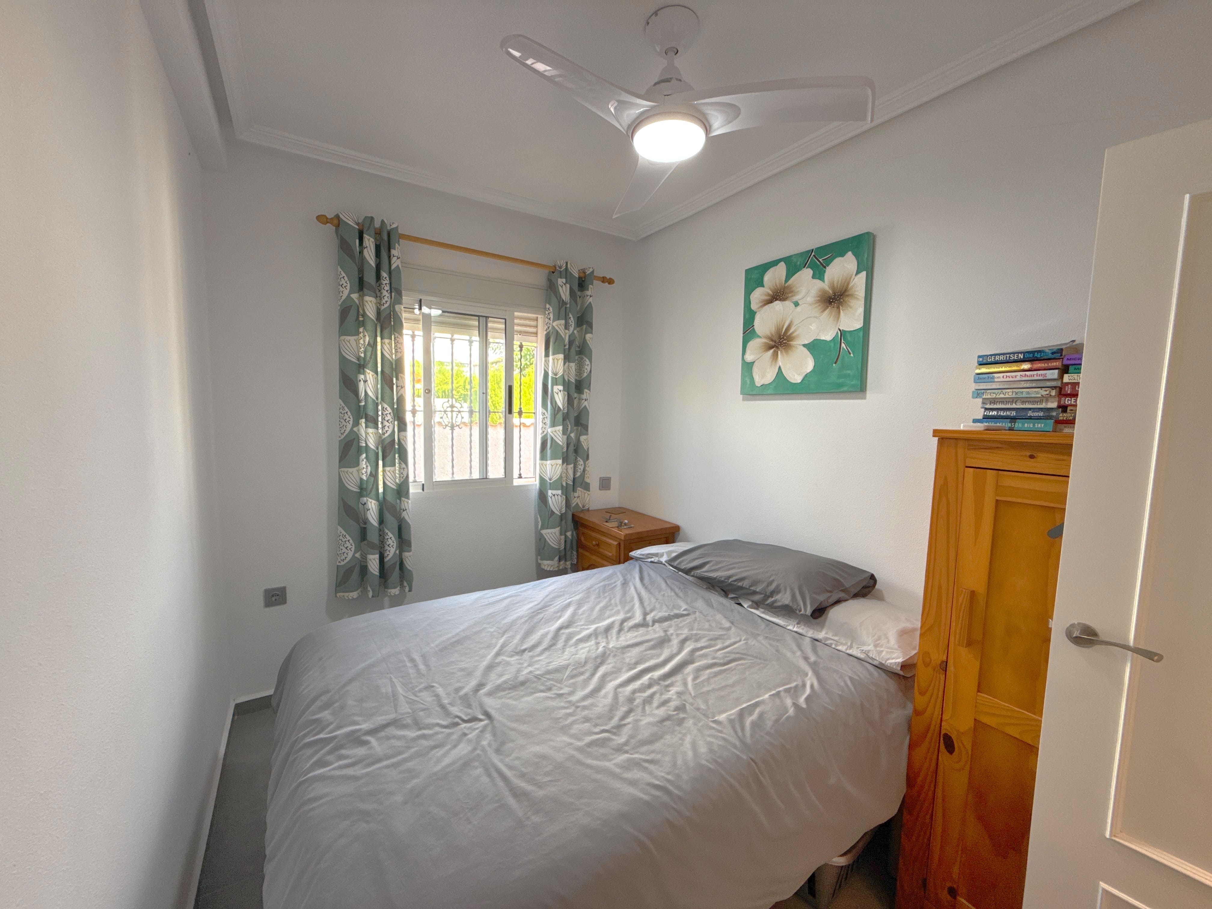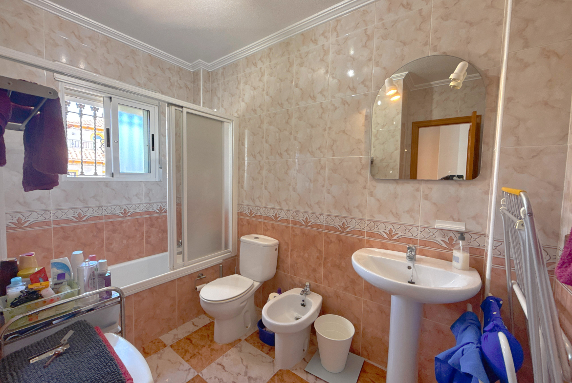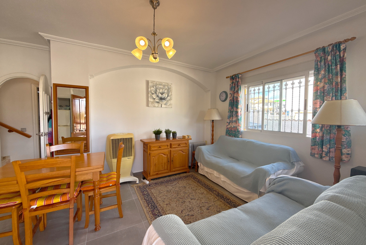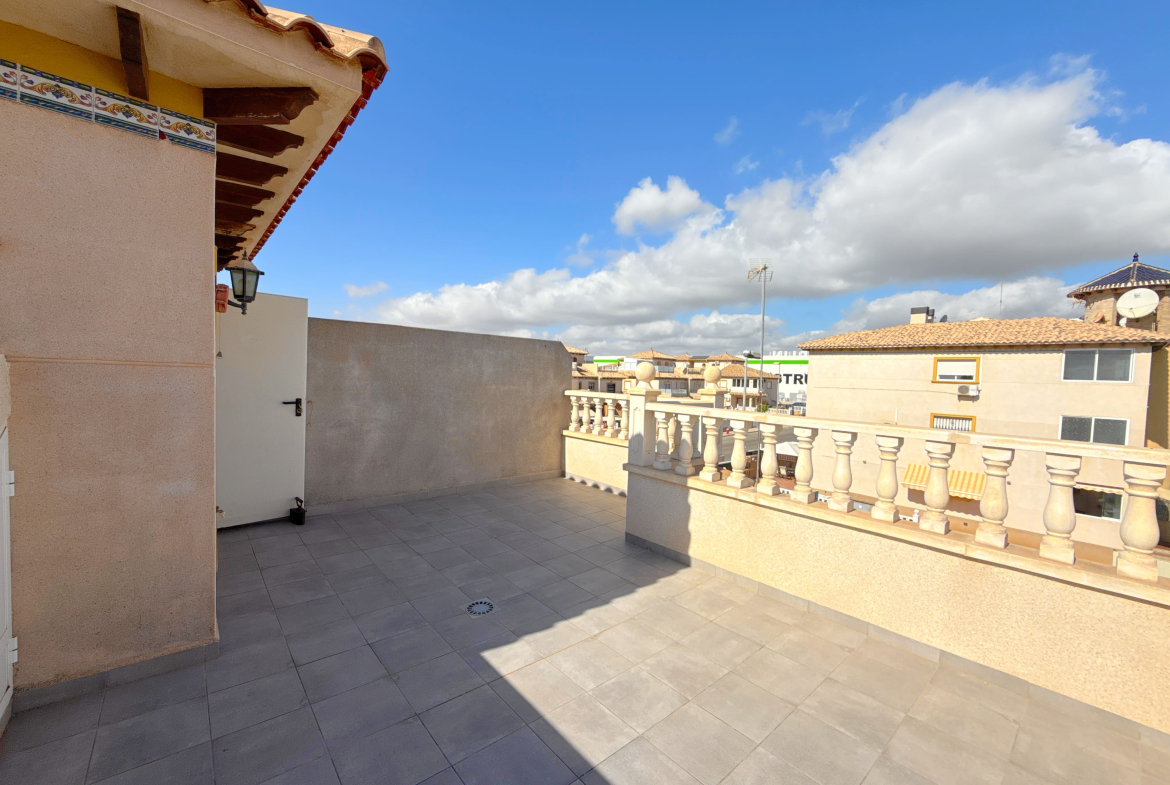 This new to the market La Zenia Quad house is set in the fantastic San Jose 4 complex and is walking distance to La Zenia, Cabo Roig and the Zenia Boulevard. This quad house is on a larger plot as its an end terrace house, the vendor has also extended the terrace out so you have lots of extra room for your out side furniture, although you do also have lots of room on the side of the house as well. The vendor has added a new kitchen and has re tiled the property on the inside and outside down stairs, on entry there is a an open lounge and kitchen area with a double bedroom and a w/c, with a marble staircase leading to another 2 double bedrooms and a full family bathroom plus off the main bedroom you have a fantastic balcony. The top level has a large solarium with panoramic views and also a sea view. The complex comes with a gorgeous commmunity swimming pool and gardens to relax in all day and is only a 15 min walk to the blue flag award winning beach.
