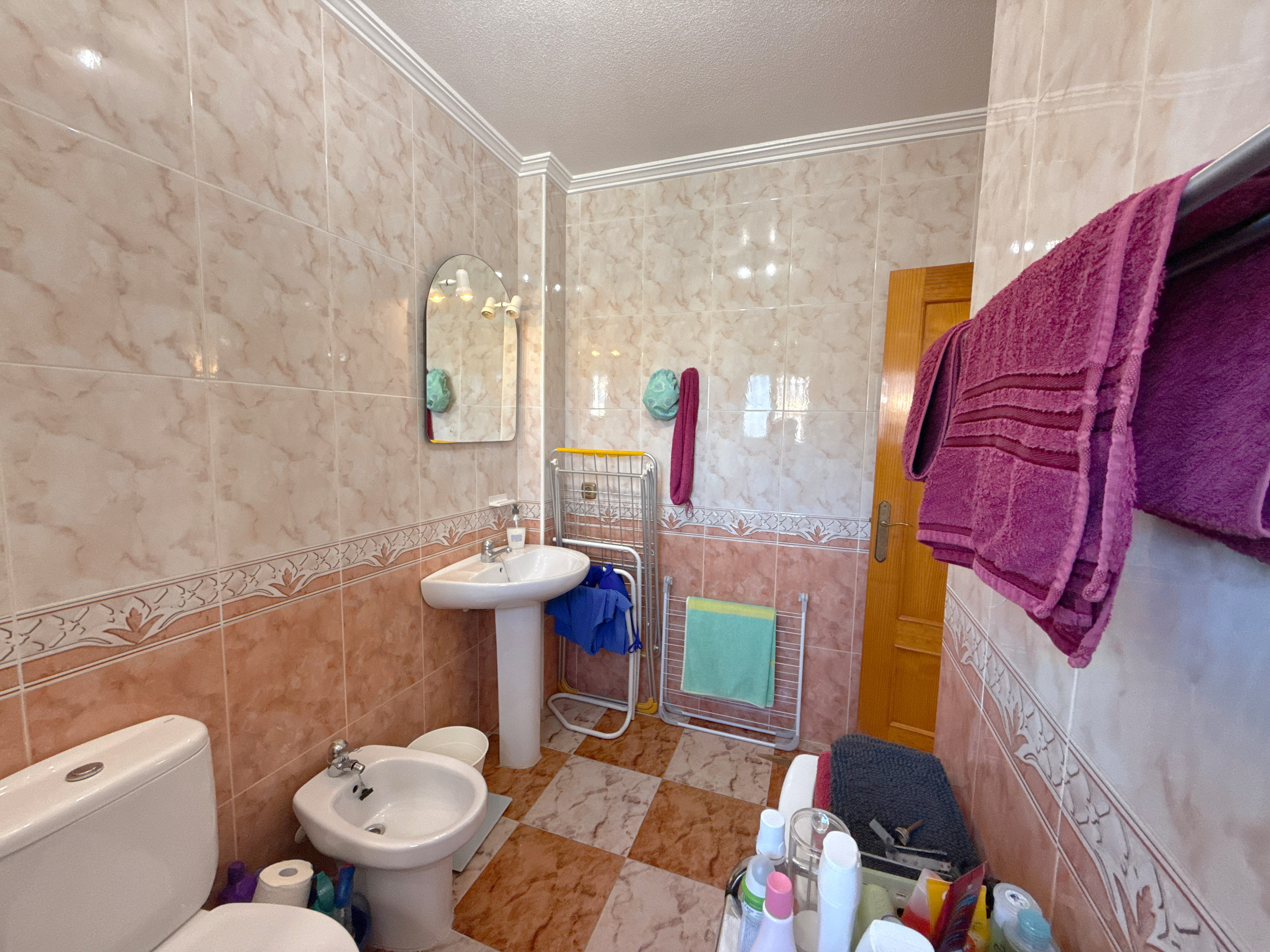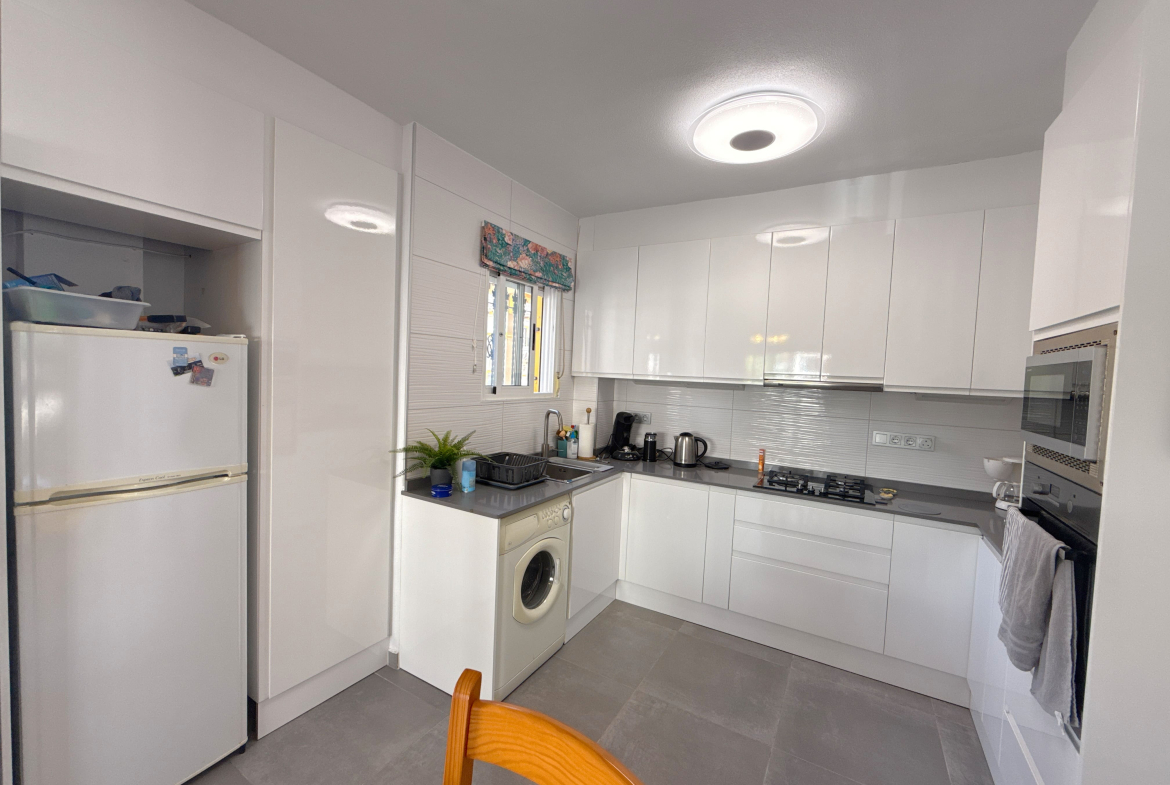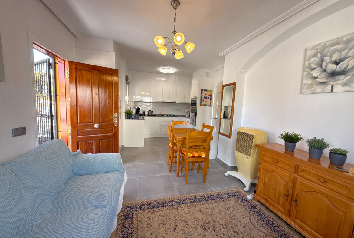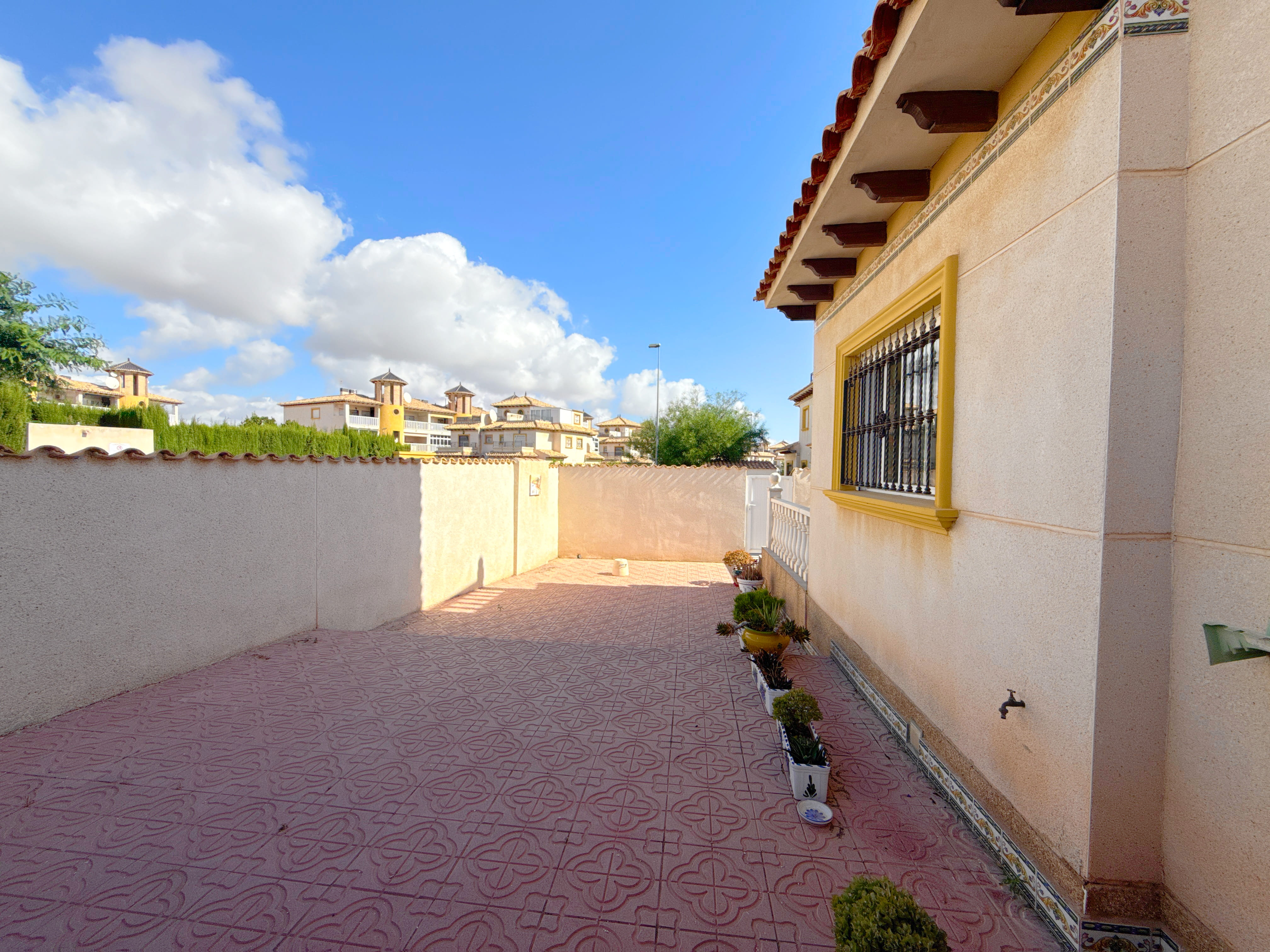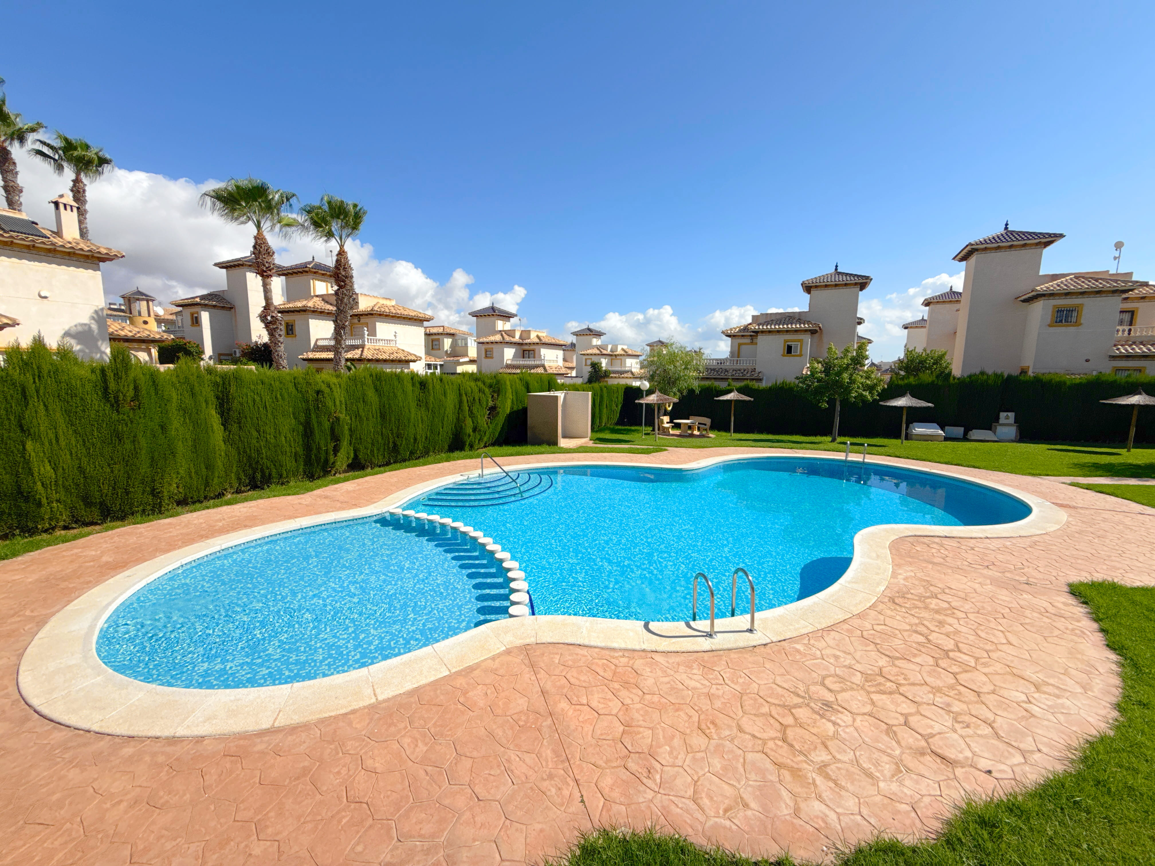 This new to the market La Zenia Quad house is set in the fantastic San Jose 4 complex and is walking distance to La Zenia, Cabo Roig and the Zenia Boulevard. This quad house is on a larger plot as its an end terrace house, the vendor has also extended the terrace out so you have lots of extra room for your out side furniture, although you do also have lots of room on the side of the house as well. The vendor has added a new kitchen and has re tiled the property on the inside and outside down stairs, on entry there is a an open lounge and kitchen area with a double bedroom and a w/c, with a marble staircase leading to another 2 double bedrooms and a full family bathroom plus off the main bedroom you have a fantastic balcony. The top level has a large solarium with panoramic views and also a sea view. The complex comes with a gorgeous commmunity swimming pool and gardens to relax in all day and is only a 15 min walk to the blue flag award winning beach.