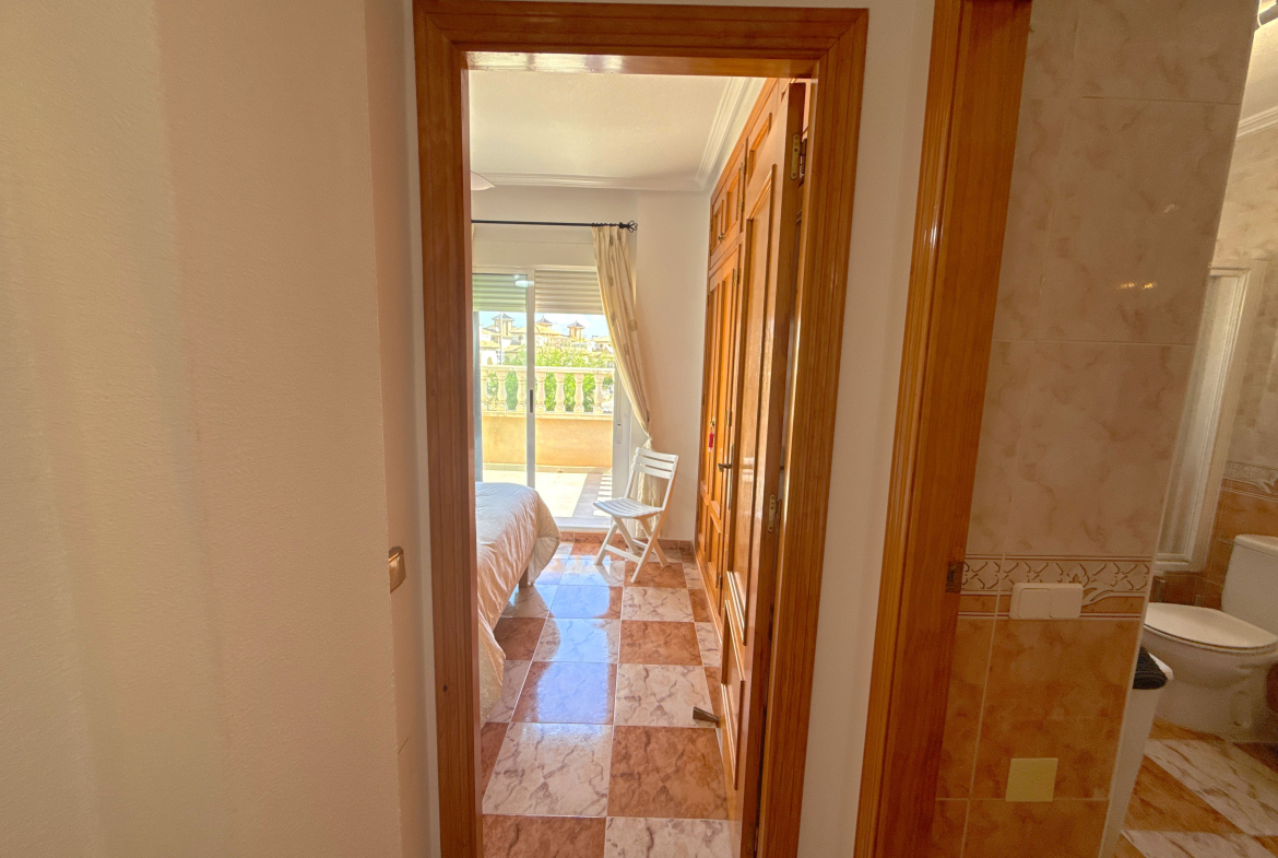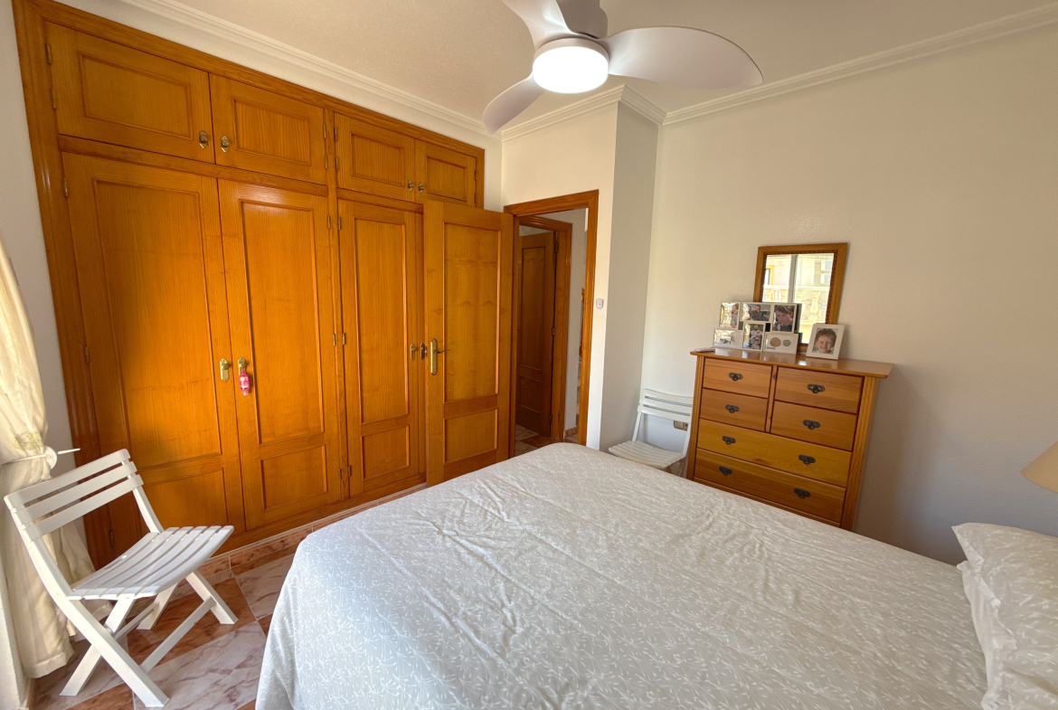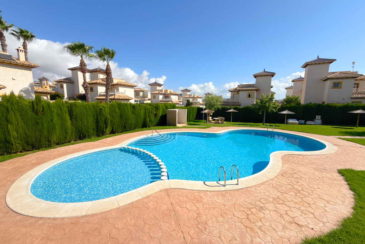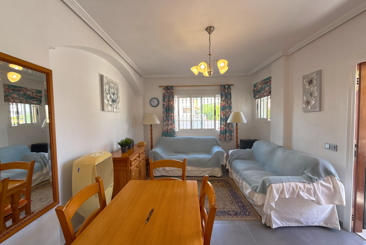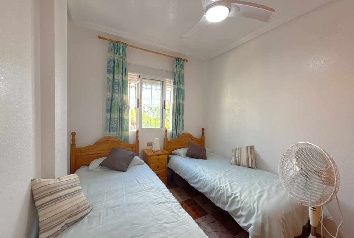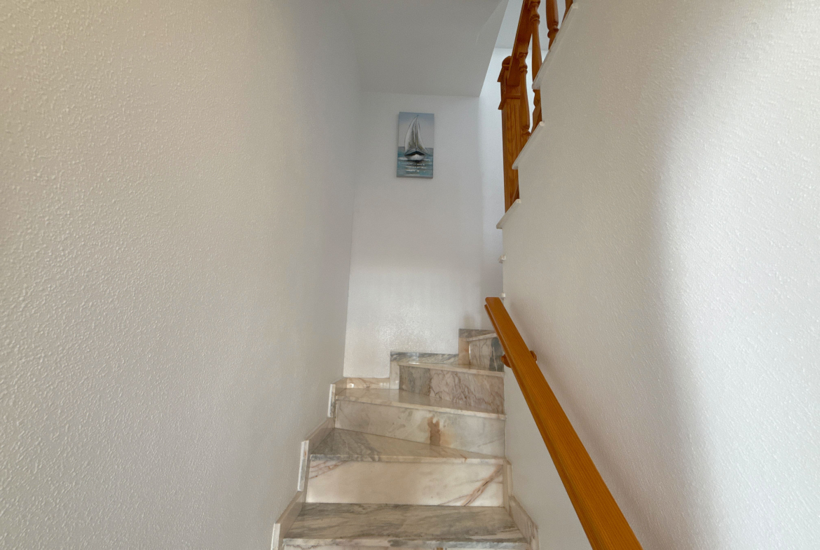 This new to the market La Zenia Quad house is set in the fantastic San Jose 4 complex and is walking distance to La Zenia, Cabo Roig and the Zenia Boulevard. This quad house is on a larger plot as its an end terrace house, the vendor has also extended the terrace out so you have lots of extra room for your out side furniture, although you do also have lots of room on the side of the house as well. The vendor has added a new kitchen and has re tiled the property on the inside and outside down stairs, on entry there is a an open lounge and kitchen area with a double bedroom and a w/c, with a marble staircase leading to another 2 double bedrooms and a full family bathroom plus off the main bedroom you have a fantastic balcony. The top level has a large solarium with panoramic views and also a sea view. The complex comes with a gorgeous commmunity swimming pool and gardens to relax in all day and is only a 15 min walk to the blue flag award winning beach.