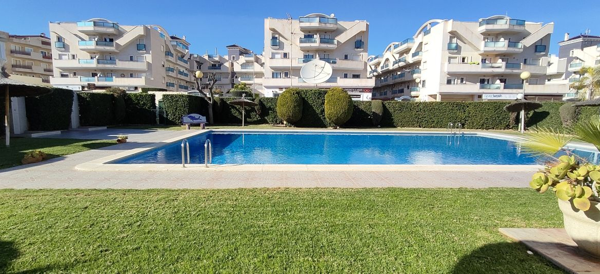 The complex features a beautiful communal pool and landscaped green areas, ideal for enjoying the Mediterranean climate.