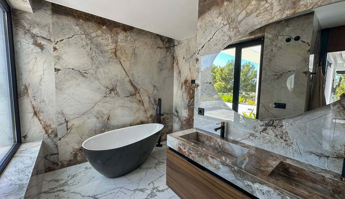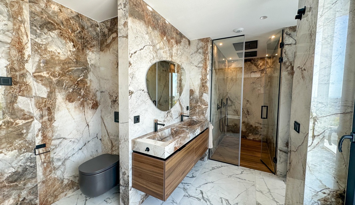 This villa is a triumph of modern engineering and sustainable luxury: underfloor heating throughout, a heated infinity pool, solar panels, zoned central air-conditioning, and a private elevator connecting all floors ensure ultimate comfort and convenience. Expansive outdoor terraces, an outdoor kitchen, and landscaped gardens provide the perfect backdrop for grand entertaining or serene relaxation under the Mediterranean sun.