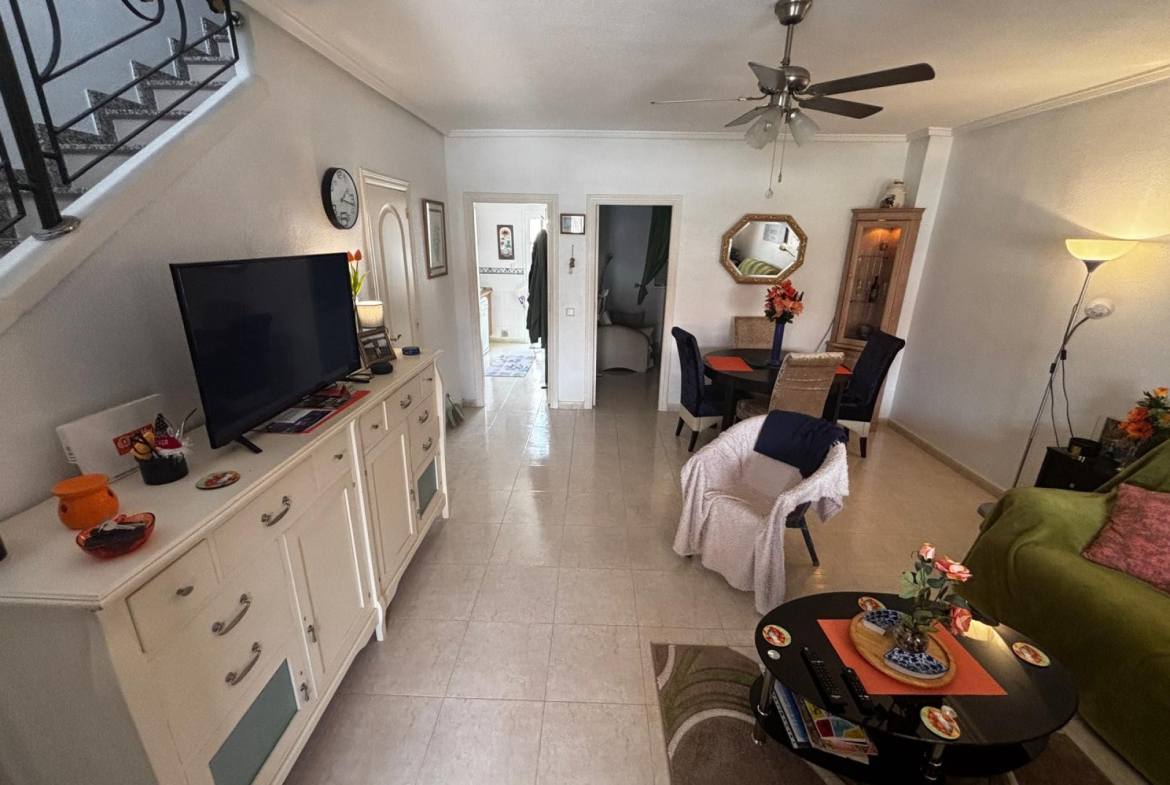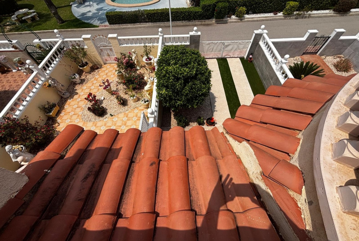 We have a beautiful 3 bedroom 2 bathroom west facing Lola style house for sale in the very popular area of Dona Pepa, part of Ciudad Quesada on the Costa Blanca. It is located close to many amenities including bars, restaurants, supermarkets and the long sandy beaches at Guardamar del Segura are just a 7 minute drive. The property is found inside a well established gated community and overlooks the beautiful swimming pool. The current owner has kept the home maintained to a high standard.The front of the property has a covered terrace with plenty of garden space and drive for car.