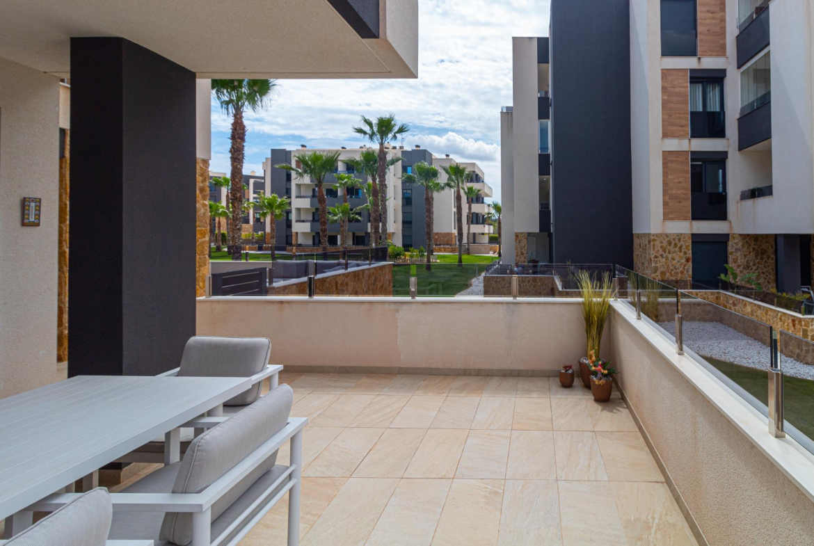 ¡Bienvenido a tu nuevo hogar en el Residencial Amanecer VI! Este encantador apartamento en planta baja, ubicado en la prestigiosa urbanización Los Almendros, te ofrece una vida cómoda y relajada. Disfruta de una amplia terraza con impresionantes vistas a los exuberantes jardines comunitarios, el lugar perfecto para relajarte o disfrutar de almuerzos al aire libre. ~Con dos dormitorios y dos baños (uno en suite), este apartamento es espacioso y funcional. La cocina americana, totalmente equipada, se integra perfectamente con el salón, creando un ambiente abierto y luminoso. Un práctico patio interior aporta aún más luz natural y un toque extra de privacidad. Los armarios empotrados ofrecen un amplio espacio de almacenamiento, y la comodidad del aire acondicionado por conductos (frío/calor) garantiza tu confort durante todo el año. ~El apartamento se vende completamente amueblado, listo para entrar a vivir. Además, incluye una plaza de garaje subterránea y un trastero, proporcionando soluciones prácticas para el almacenamiento y el aparcamiento. ~El Residencial Amanecer VI es conocido por su tranquilidad y su ambiente familiar. Los cuidados jardines comunitarios y las zonas comunes ofrecen un entorno ideal para disfrutar del tiempo libre. Su ubicación privilegiada en Los Almendros te sitúa cerca de todos los servicios necesarios, como supermercados, restaurantes y centros comerciales. Y lo mejor de todo: ¡las playas de ensueño de la zona están a un corto trayecto en coche! Imagina disfrutar del sol y el mar en minutos. ~No pierdas la oportunidad de vivir en este paraíso. Contacta con nosotros hoy mismo para concertar una visita.