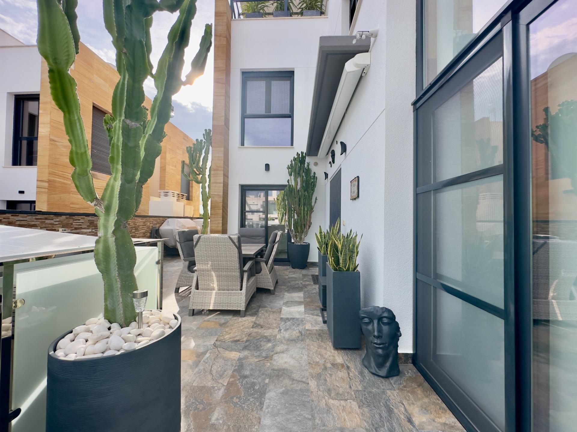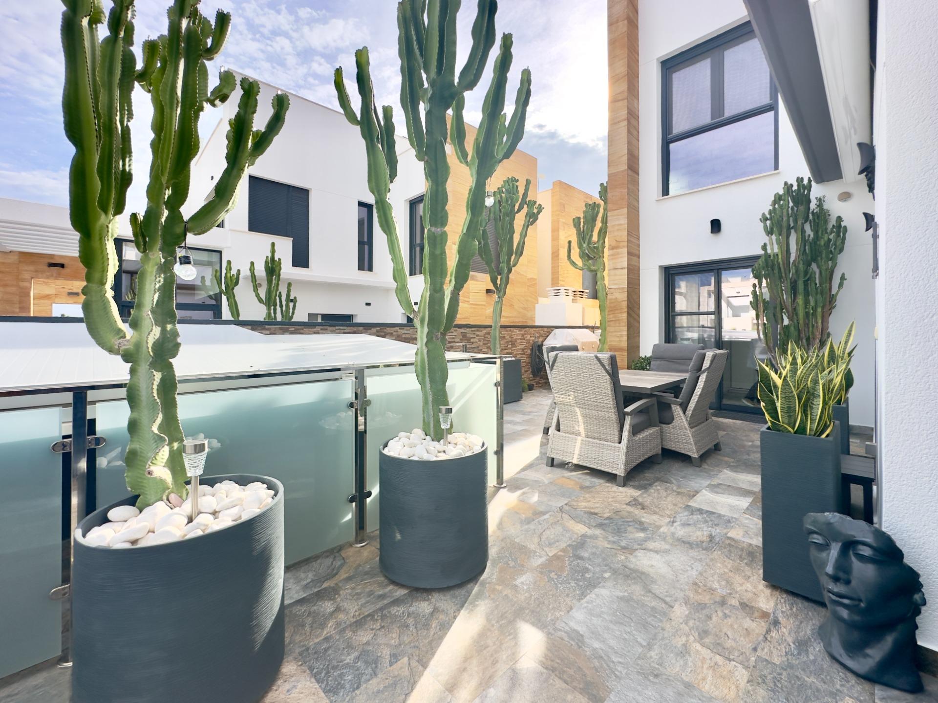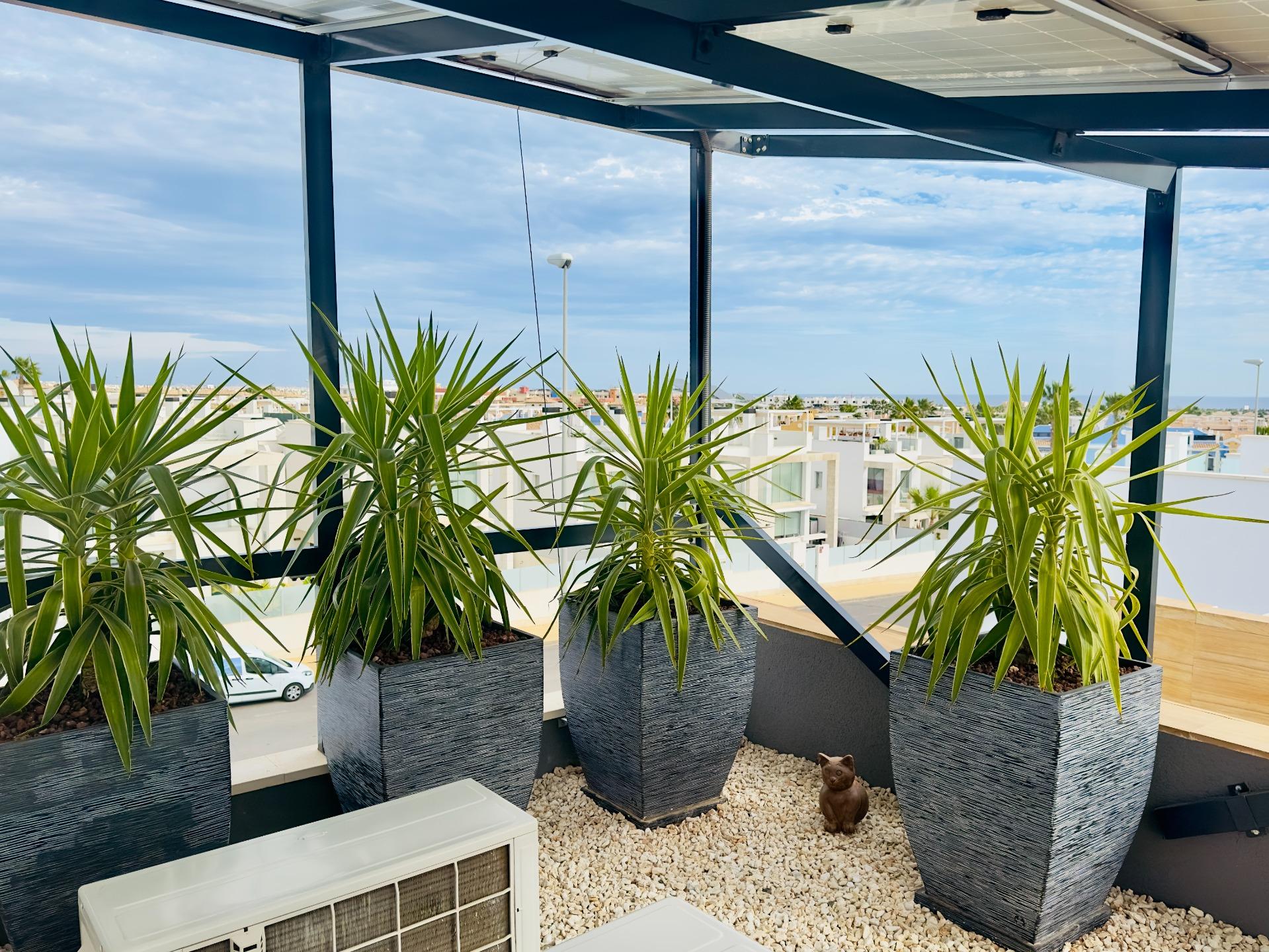 Magnífica villa independiente reformada en Lomas de Cabo Roig (Orihuela Costa), ubicada en una parcela de 197 m2 y equipada con todas las comodidades.~~La vivienda se distribuye en dos plantas más solárium. En la planta baja ofrece un amplio y luminoso salón-comedor con cocina americana y grandes ventanales con vistas a la piscina privada con cascada, además de un dormitorio y un baño con ducha. ~En la primera planta cuenta con dos dormitorios dobles y dos baños completos con suelo radiante. ~En la planta alta se disfruta de un espectacular solárium con vistas al mar, perfecto para relajarse durante todo el año. ~~La propiedad dispone de placas solares, trastero y parking dentro de la parcela. Ubicada en una zona tranquila y bien comunicada, esta villa es una oportunidad única para quienes buscan confort, privacidad y estilo en la Costa Blanca.~~Orihuela Costa es una de las zonas más atractivas de la Costa Blanca, conocida por sus playas de aguas cristalinas, su clima mediterráneo y su ambiente tranquilo pero con todos los servicios a mano. Cuenta con calas y playas con Bandera Azul, centros comerciales como La Zenia Boulevard, una amplia oferta de restaurantes y zonas de ocio, además de prestigiosos campos de golf. Con excelentes conexiones y un entorno ideal para vivir o disfrutar de vacaciones, Orihuela Costa combina calidad de vida, naturaleza y comodidad.