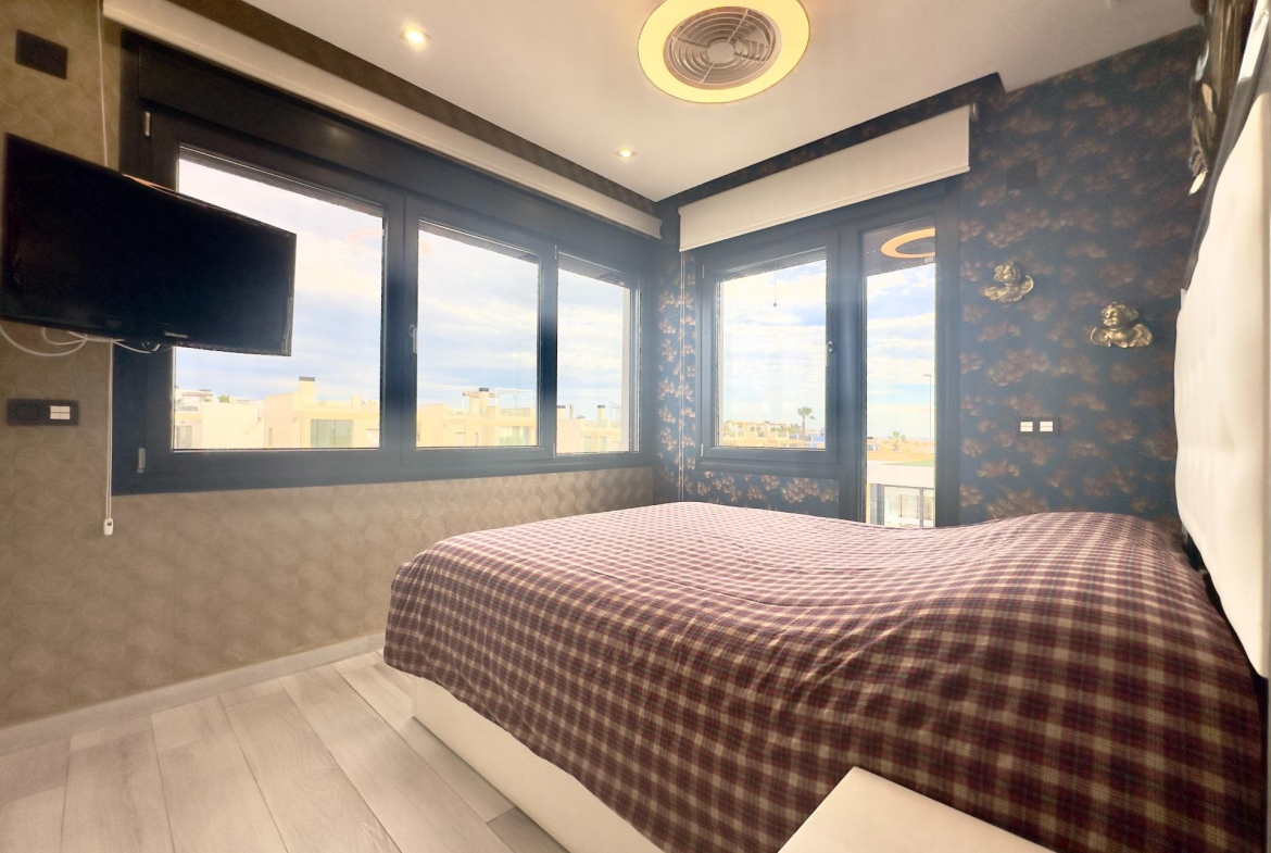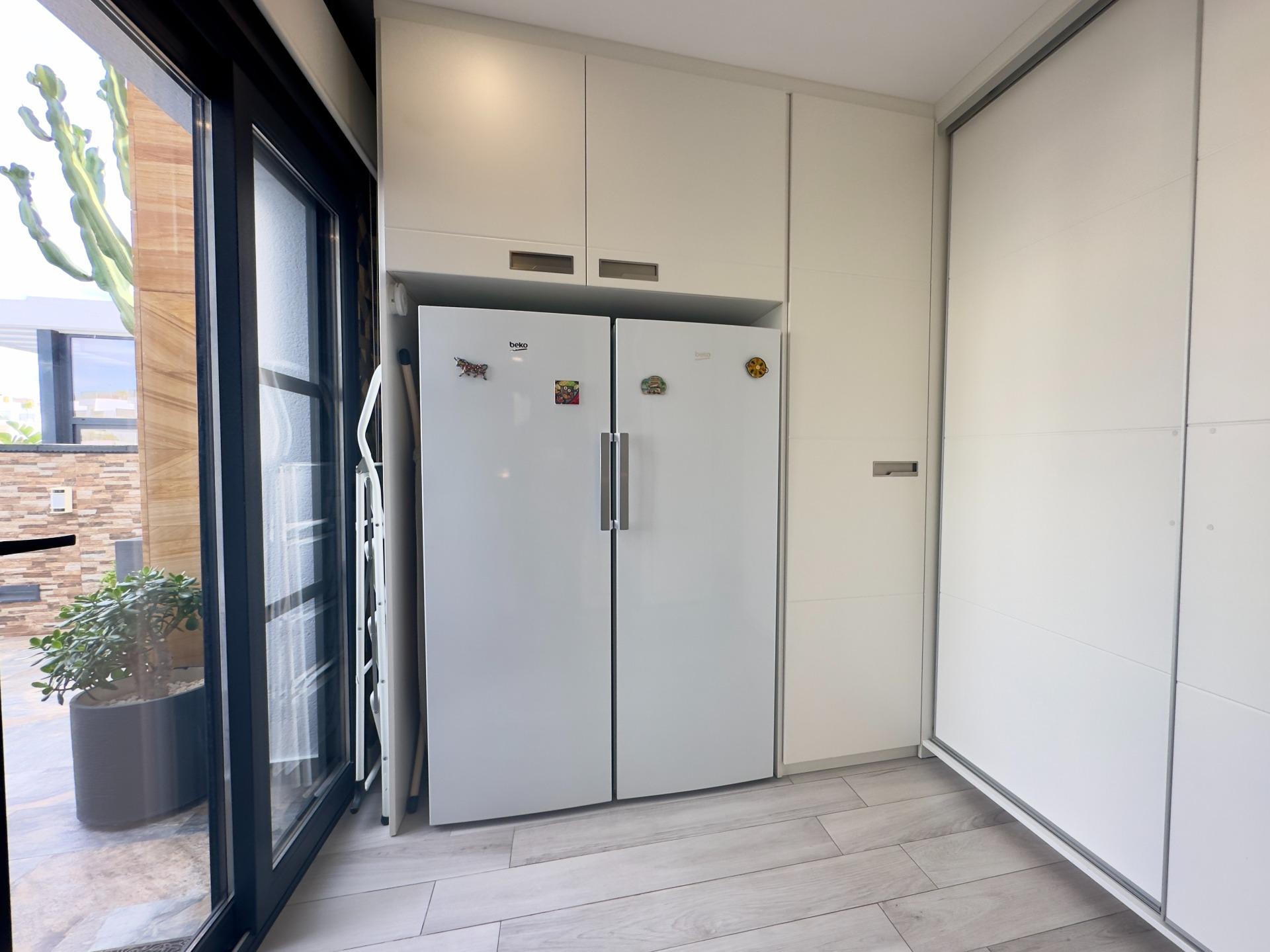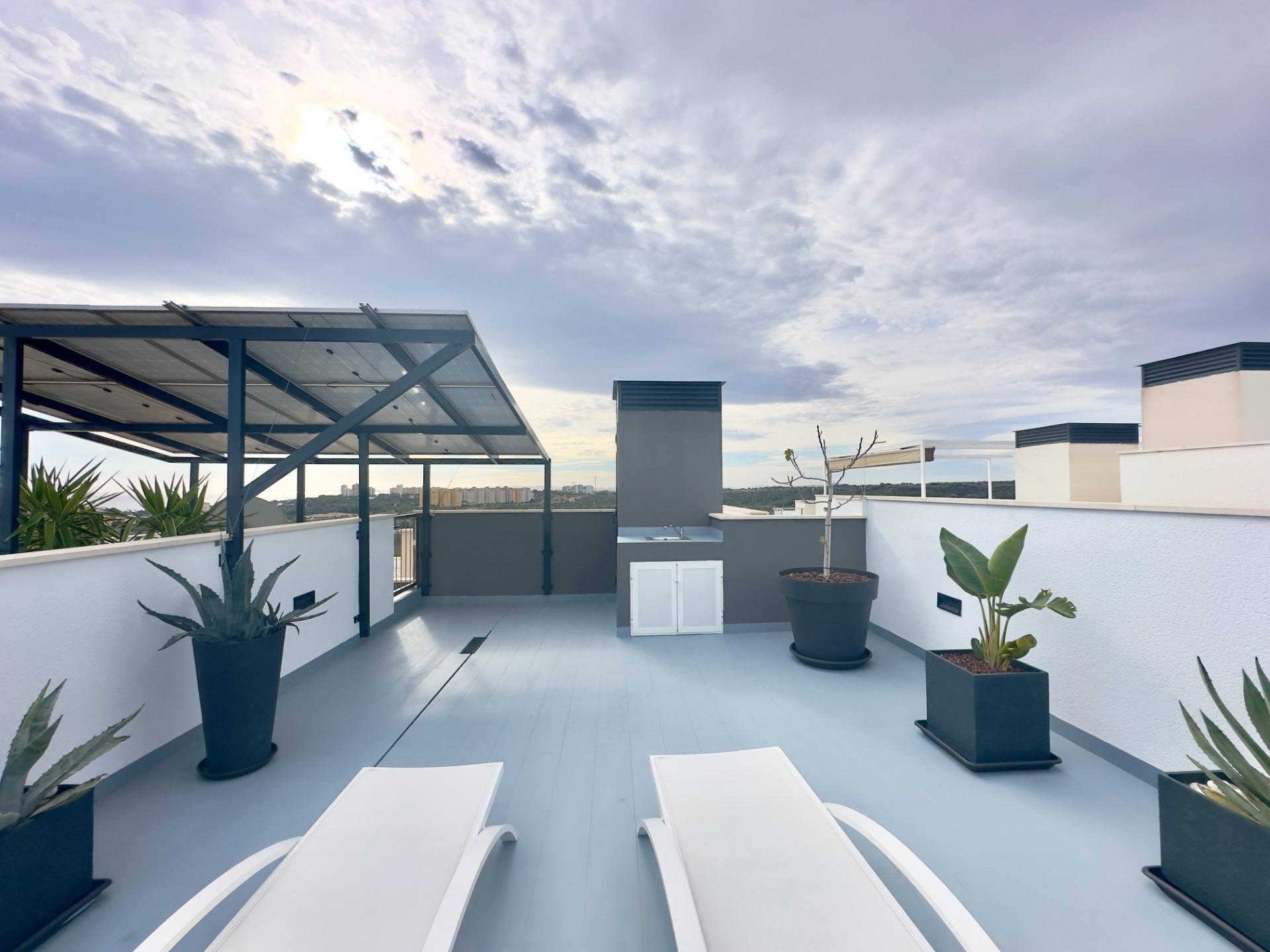 Magnífica villa independiente reformada en Lomas de Cabo Roig (Orihuela Costa), ubicada en una parcela de 197 m2 y equipada con todas las comodidades.~~La vivienda se distribuye en dos plantas más solárium. En la planta baja ofrece un amplio y luminoso salón-comedor con cocina americana y grandes ventanales con vistas a la piscina privada con cascada, además de un dormitorio y un baño con ducha. ~En la primera planta cuenta con dos dormitorios dobles y dos baños completos con suelo radiante. ~En la planta alta se disfruta de un espectacular solárium con vistas al mar, perfecto para relajarse durante todo el año. ~~La propiedad dispone de placas solares, trastero y parking dentro de la parcela. Ubicada en una zona tranquila y bien comunicada, esta villa es una oportunidad única para quienes buscan confort, privacidad y estilo en la Costa Blanca.~~Orihuela Costa es una de las zonas más atractivas de la Costa Blanca, conocida por sus playas de aguas cristalinas, su clima mediterráneo y su ambiente tranquilo pero con todos los servicios a mano. Cuenta con calas y playas con Bandera Azul, centros comerciales como La Zenia Boulevard, una amplia oferta de restaurantes y zonas de ocio, además de prestigiosos campos de golf. Con excelentes conexiones y un entorno ideal para vivir o disfrutar de vacaciones, Orihuela Costa combina calidad de vida, naturaleza y comodidad.