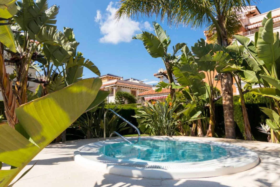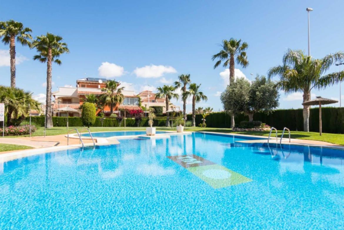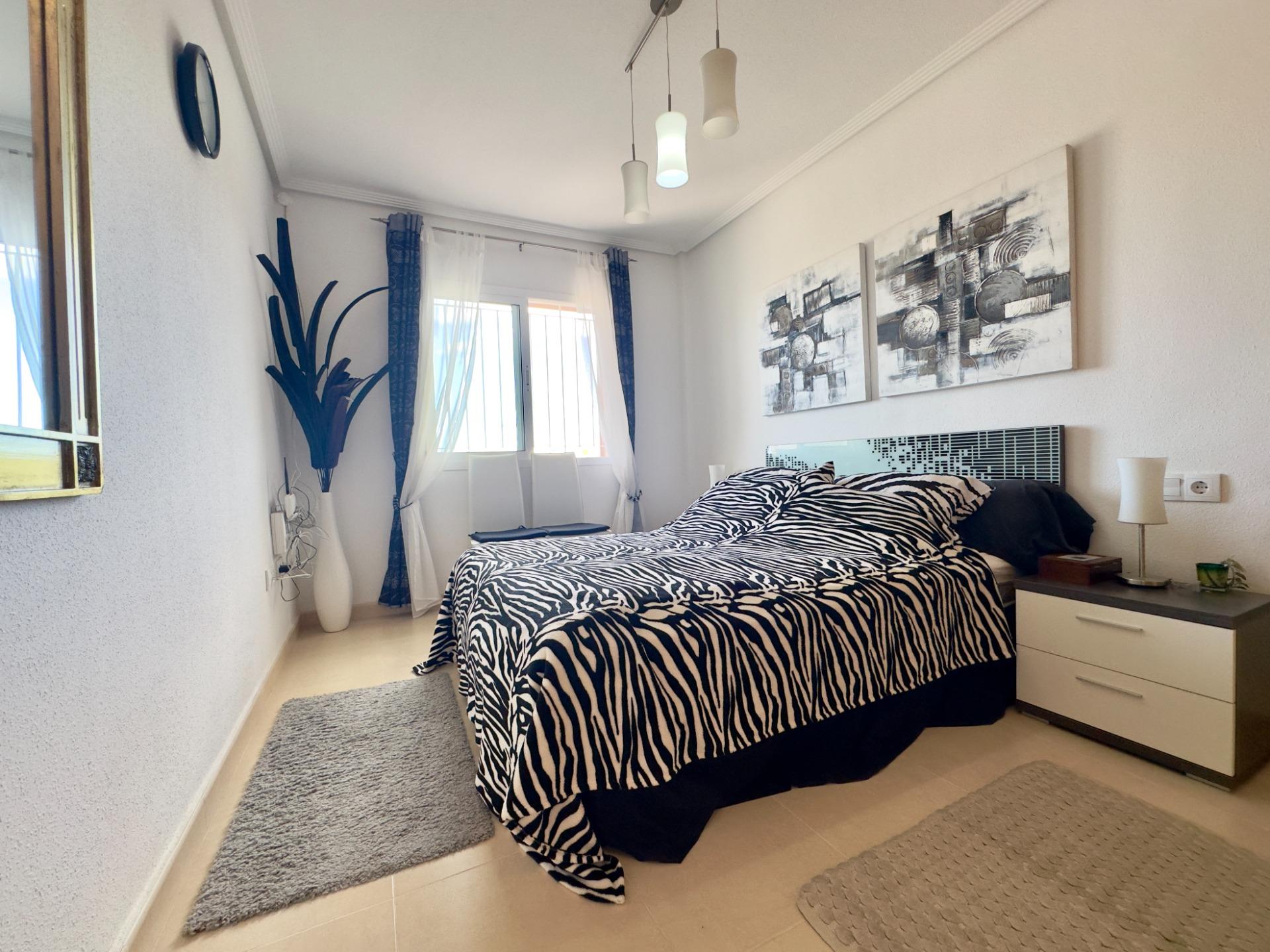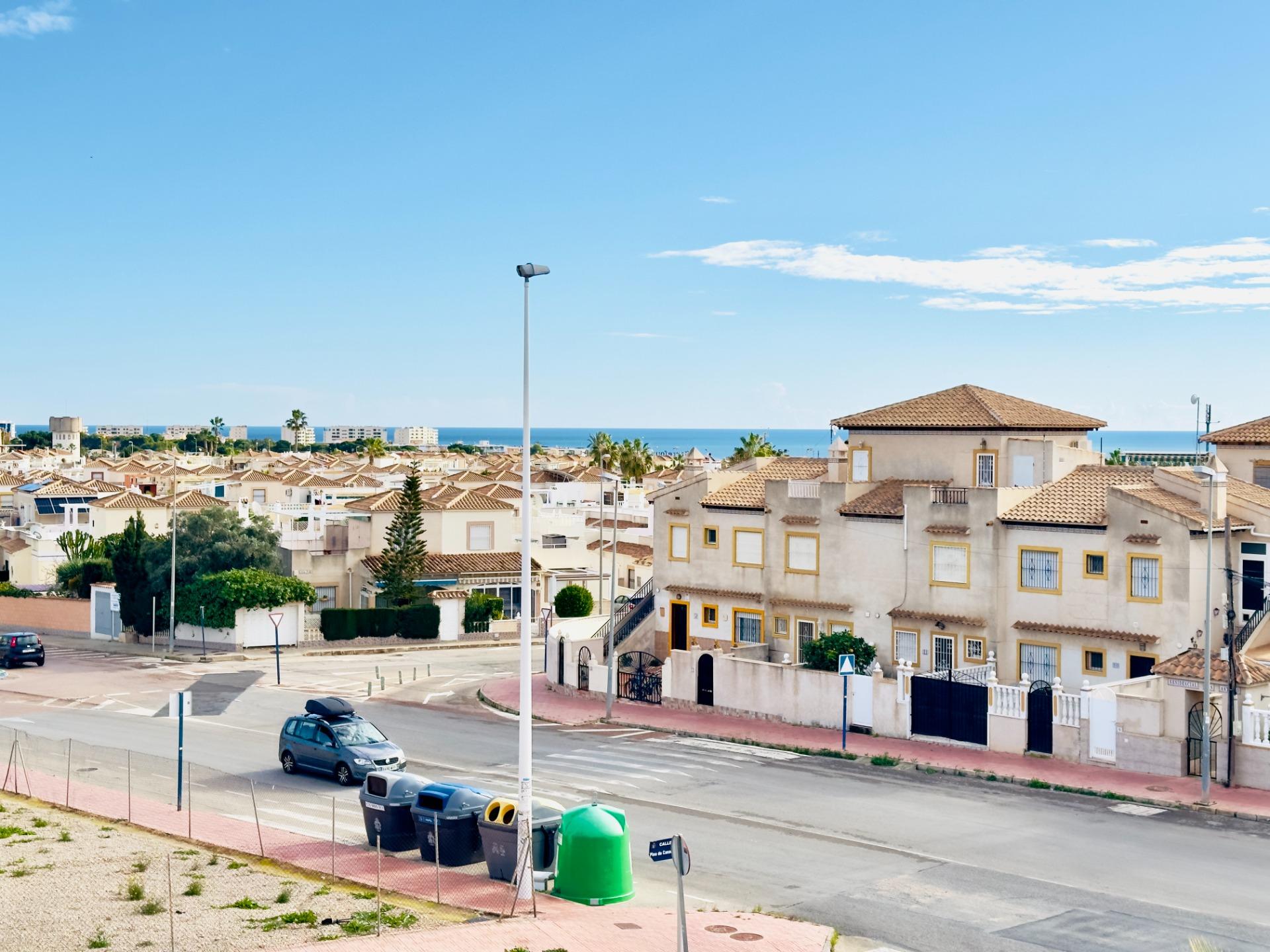 Bungalow en planta alta con solárium privado, piscina comunitaria con jacuzzi y vistas al mar.~Se vende acogedor bungalow en planta alta, ideal para disfrutar del clima mediterráneo durante todo el año. La vivienda cuenta con 2 dormitorios, 1 baño completo y una cocina americana integrada en un luminoso salón, creando un espacio cómodo y funcional. Dispone además de lavadero independiente y trastero, ofreciendo un práctico espacio de almacenaje.~~Desde el salón se accede a un balcón con vistas lejanas al mar, perfecto para relajarse al aire libre. En la parte superior, destaca su espectacular solárium privado de 39 m2, equipado con ducha, barbacoa y zona de fregado, ideal para disfrutar del sol y organizar reuniones con total privacidad.~~El residencial ofrece una cuidada piscina comunitaria con jacuzzi, rodeada de zona verde de césped y sombrillas, creando un entorno perfecto para el descanso y el ocio. Además, cuenta con club social, ideal para encuentros y actividades.~~Una vivienda ideal como residencia habitual, segunda vivienda o inversión, situada en un entorno tranquilo y con excelentes zonas comunes para disfrutar del estilo de vida mediterráneo.