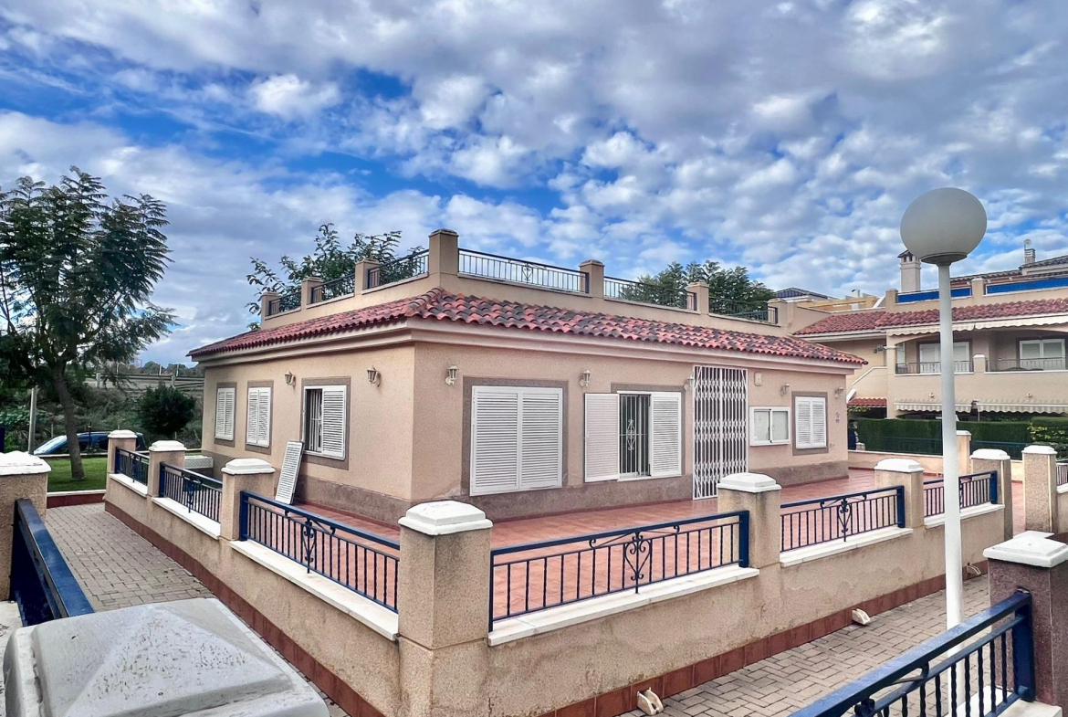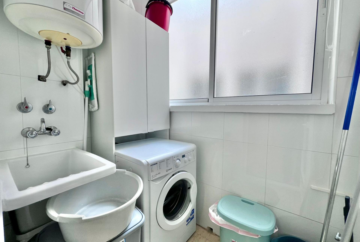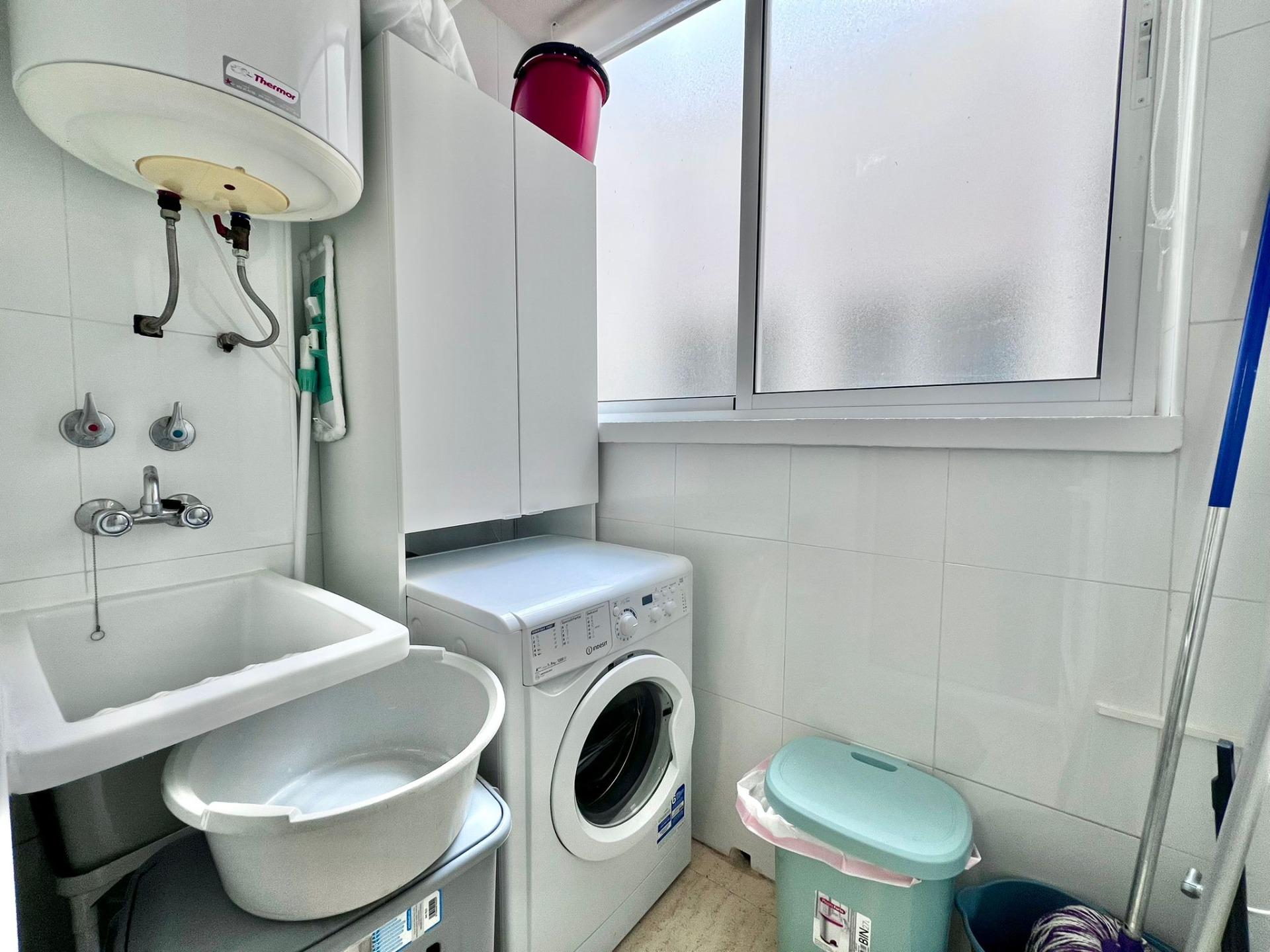 Magnífico bungalow alto situado en la exclusiva urbanización Río Mar 13, en Mil Palmeras, a escasos metros de la playa y rodeado de cuidadas zonas verdes y ajardinadas.~~La vivienda destaca por su enorme terraza en planta, perfecta para disfrutar del clima mediterráneo, con agradables vistas directas a la piscina comunitaria. Dispone de 2 dormitorios y 1 baño, además de un amplio salón-comedor muy luminoso con acceso directo a la terraza, lo que aporta una gran sensación de espacio y confort.~~Cuenta con cocina francesa totalmente equipada y práctica galería independiente.~~En la planta superior encontramos un espectacular solárium privado de 58 m2, ideal para tomar el sol, relajarse o crear una zona chill-out, también con vistas a la piscina.~~La urbanización Río Mar 13 ofrece un entorno tranquilo y cuidado, con amplias zonas comunes ajardinadas, perfecta tanto para vacaciones como para residencia habitual.~~Extras incluidos:~•Aire acondicionado~•Vivienda se vende amueblada~•Plaza de garaje incluida en el precio~•Trastero~~Una oportunidad única para disfrutar de la costa en una de las mejores zonas de Mil Palmeras.
