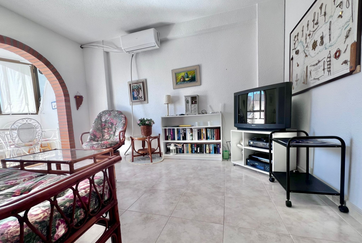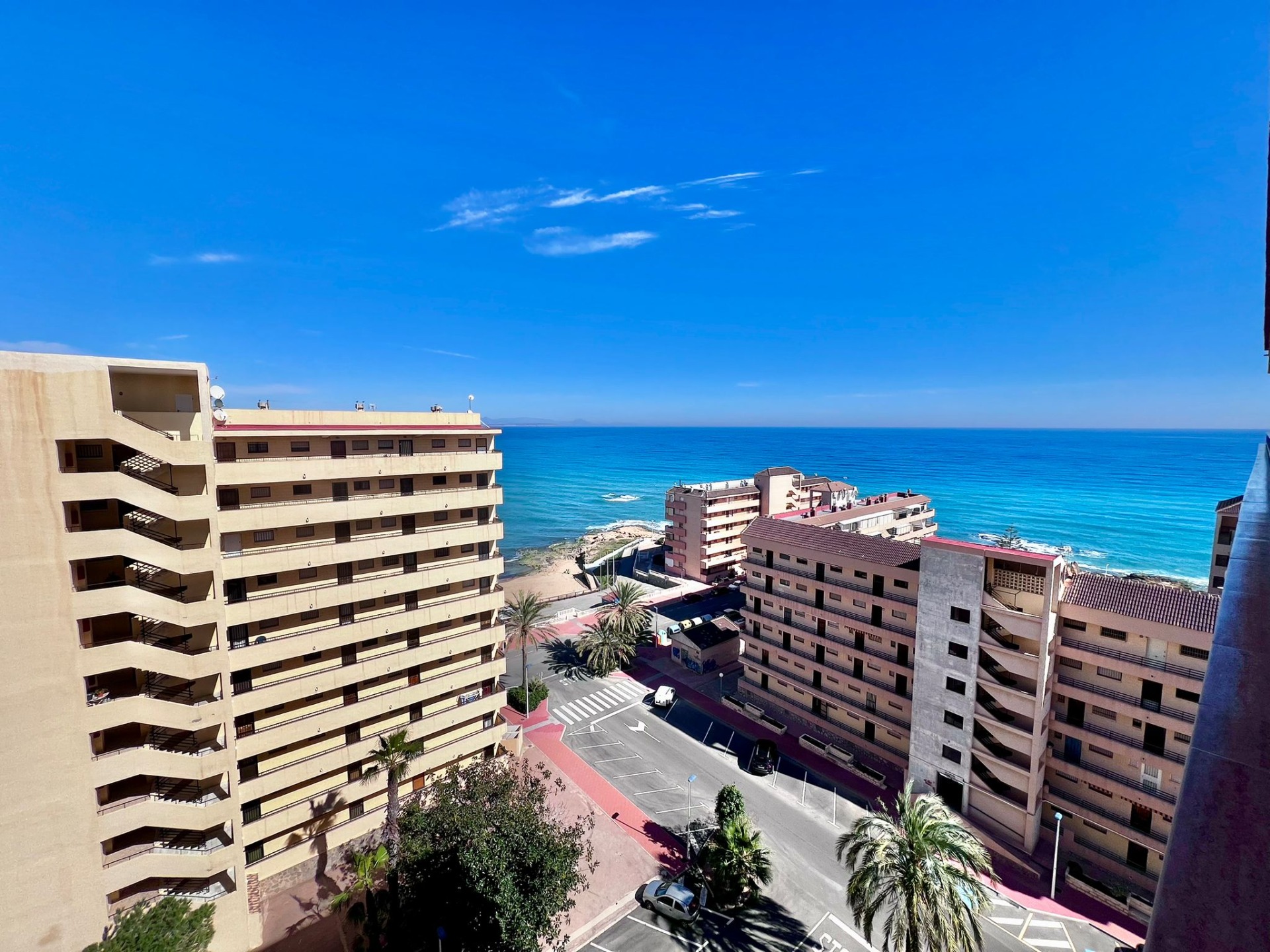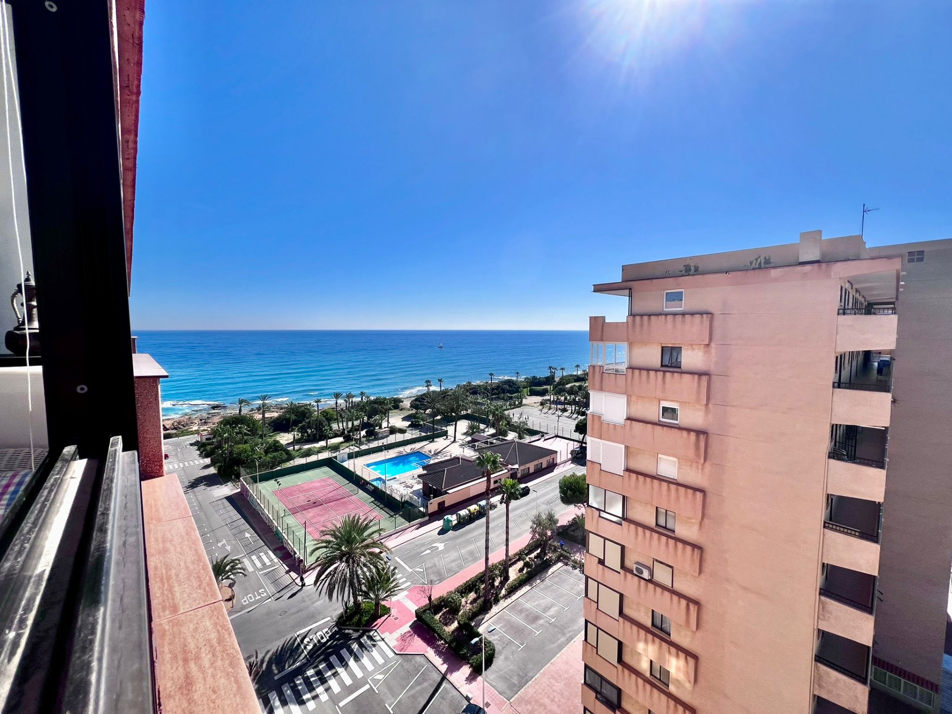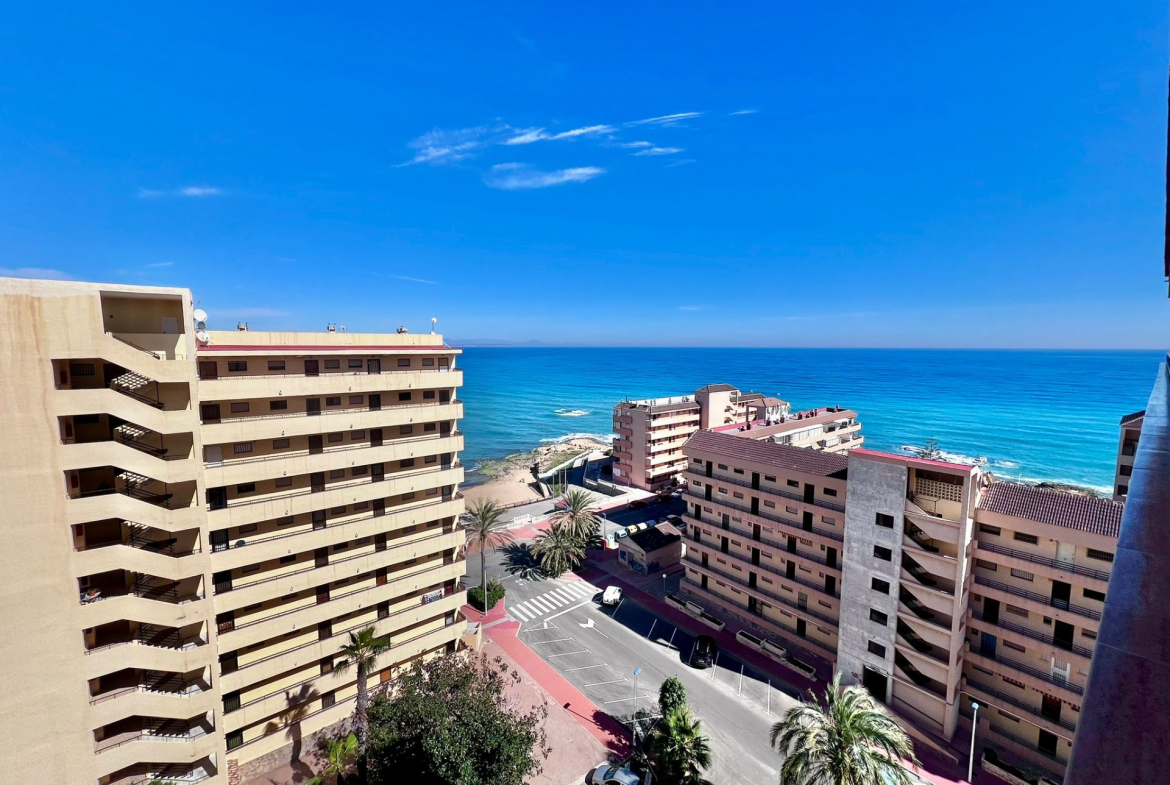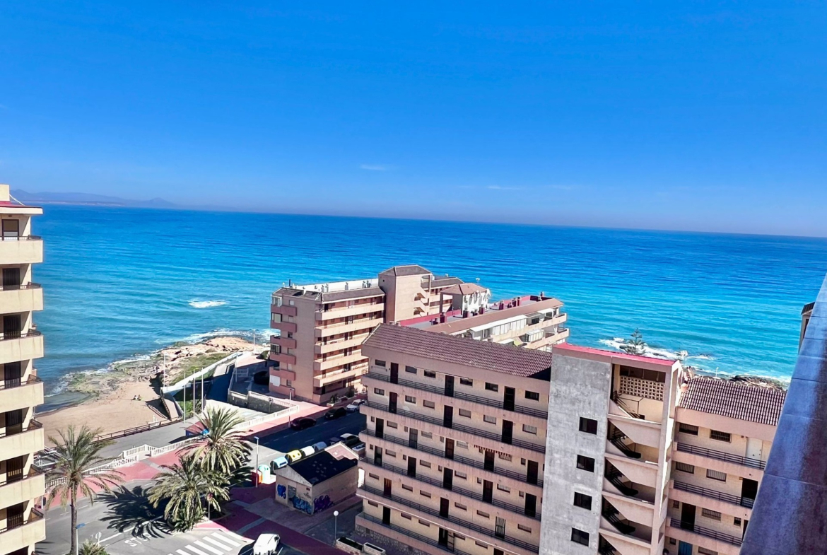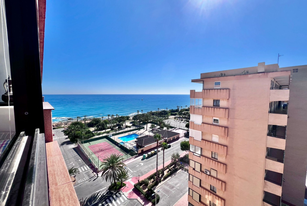 Vistas abiertas al Mediterráneo desde la novena planta~~Situado en una novena planta con orientación sur, este apartamento disfruta de una luminosidad excepcional durante todo el día y de impresionantes vistas panorámicas al mar, que convierten cada amanecer en un auténtico espectáculo.~~La vivienda se distribuye de forma cómoda y funcional:~~ 2 dormitorios amplios y luminosos~~ Baño completo~~Cocina independiente, práctica y bien ventilada~~Terraza cerrada de aproximadamente 16 m2, un espacio privilegiado con vistas directas al mar, ideal como zona de relax, comedor adicional o rincón de lectura frente al Mediterráneo~~El apartamento cuenta con aire acondicionado, garantizando confort durante todo el año, y se vende completamente amueblado, listo para entrar a vivir o comenzar a rentabilizar desde el primer día.~~ Edificio MIRAMAR IV~~El edificio dispone de ascensor, lo que aporta comodidad y accesibilidad, y su ubicación en altura permite disfrutar de mayor privacidad, ventilación y tranquilidad.