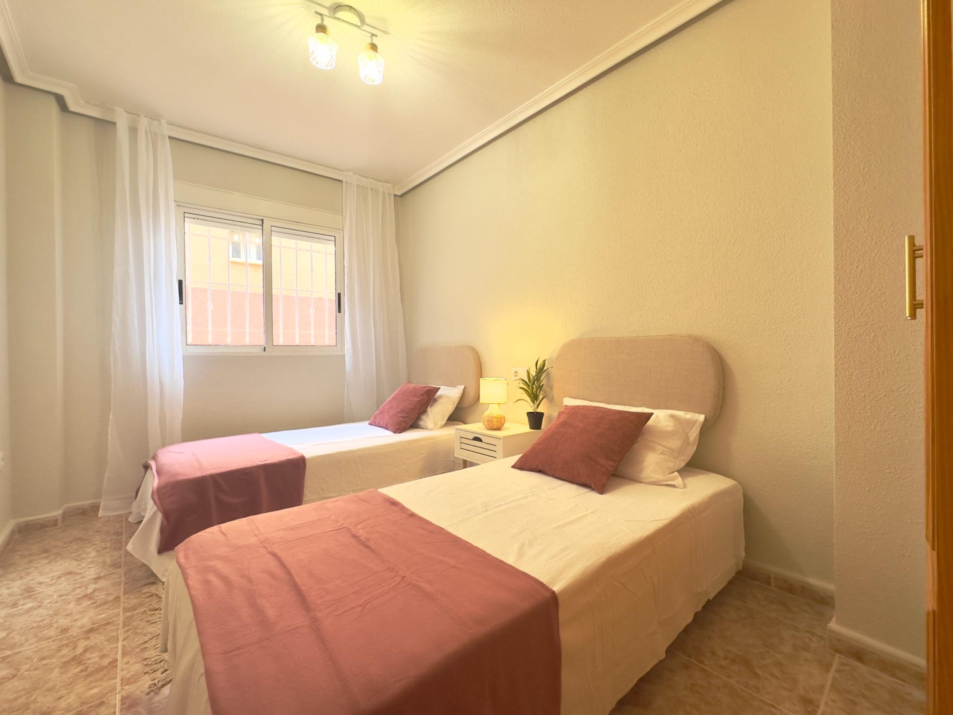 Fantástico apartamento en primera planta, ubicado a tan solo 550 metros de la Playa de Los Locos.~La vivienda dispone de 2 amplios dormitorios con armarios empotrados, baño completo con bañera, cocina independiente y balcón con orientación este, ideal para disfrutar del sol de la mañana.~~La propiedad ha sido recientemente renovada, con todo el mobiliario completamente nuevo, pintura recién realizada y aire acondicionado nuevo, lista para entrar a vivir sin necesidad de realizar ninguna mejora.~~El edificio, construido en 2001, se encuentra en una zona residencial tranquila. A tan solo 200 metros encontrarás un supermercado y la Playa de Los Locos está a apenas 550 metros. Además, la zona ofrece bares, restaurantes y todo tipo de servicios a pocos minutos andando.~~En definitiva, se trata de una excelente oportunidad, tanto como vivienda vacacional, residencia habitual o inversión.~~¡No dudes en contactarnos para concertar una visita! ~~La zona de Playa de Los Locos, situada en Torrevieja, es una de las áreas más valoradas de la ciudad por su combinación de playa, servicios y ambiente residencial.~Esta playa destaca por su arena fina, aguas claras y buen mantenimiento durante todo el año, lo que la convierte en un lugar ideal tanto para residentes como para visitantes. Además, cuenta con un agradable paseo marítimo donde se pueden encontrar restaurantes, cafeterías y chiringuitos, perfectos para disfrutar del ambiente mediterráneo.~~El barrio que rodea Playa de Los Locos es tranquilo pero muy bien comunicado, con supermercados, farmacias, bares y todo tipo de servicios a pocos minutos a pie. También está muy cerca del centro de Torrevieja, lo que permite disfrutar de todas las comodidades sin renunciar a la cercanía del mar.~~En definitiva, se trata de una ubicación muy demandada, ideal tanto para vivir todo el año como para disfrutar de vacaciones junto al Mediterráneo. ☀️