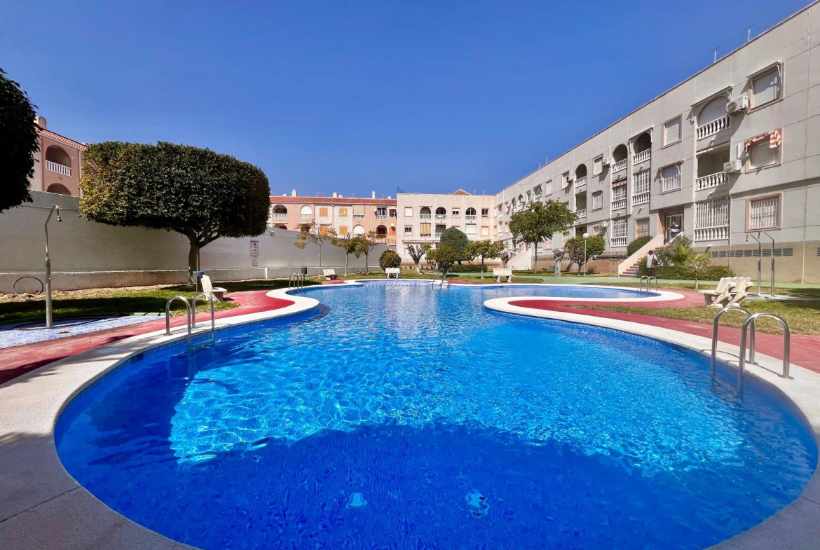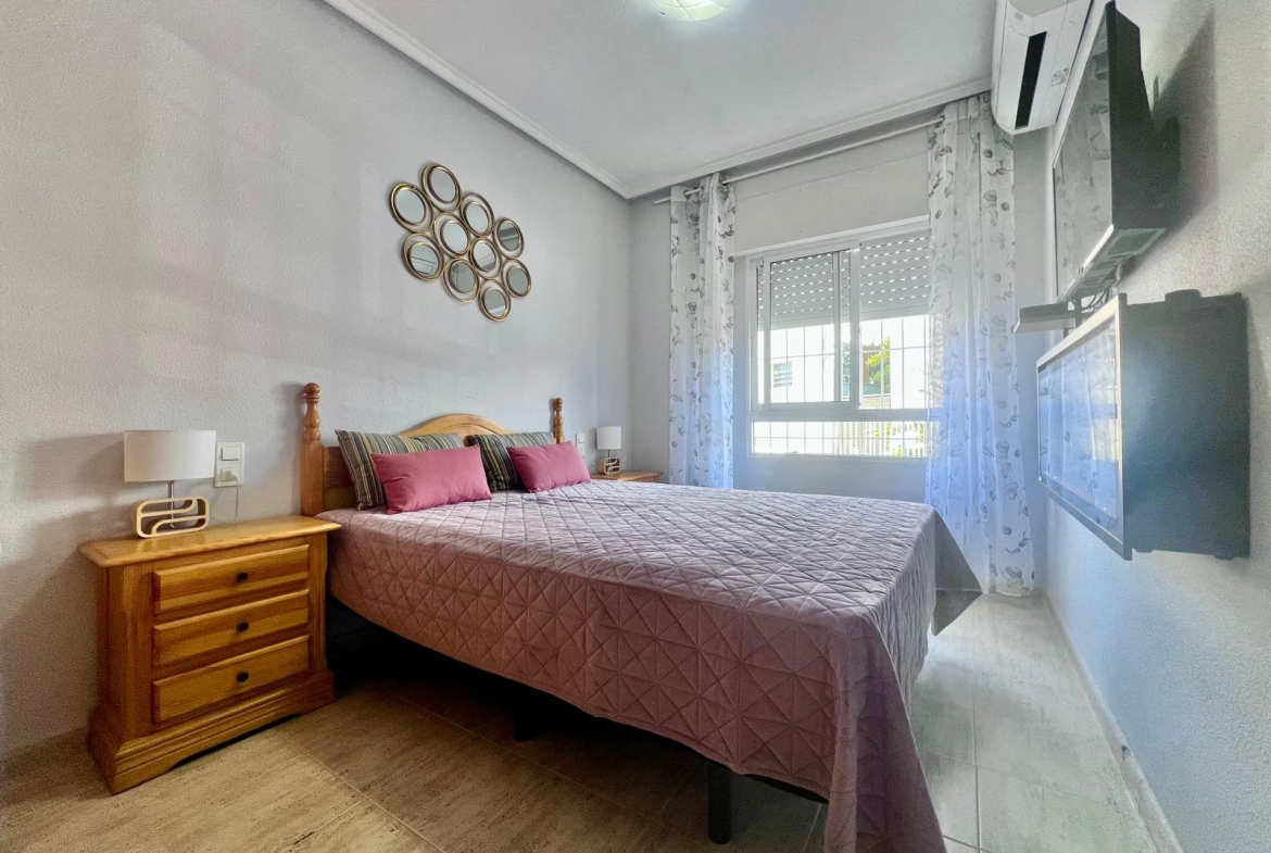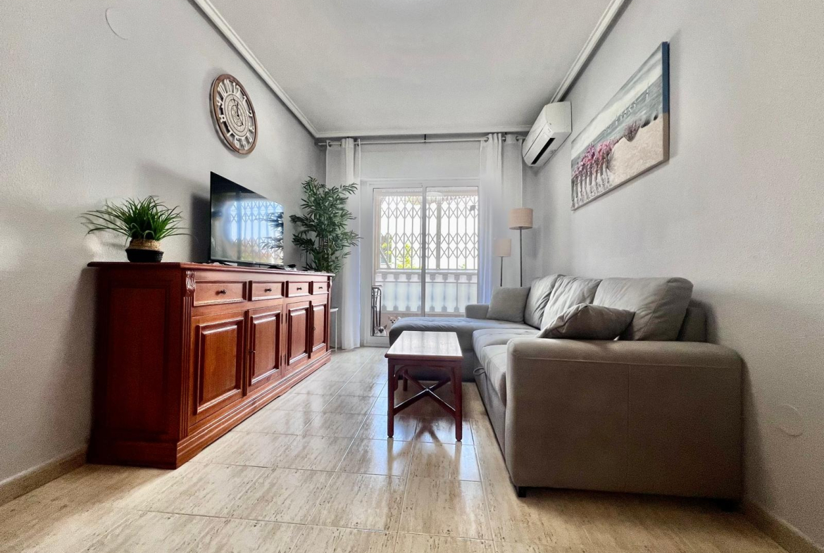 Se vende acogedor apartamento en planta baja con terraza privada y agradables vistas despejadas a la calle, ideal para disfrutar del clima mediterráneo durante todo el año.~~La vivienda cuenta con 2 dormitorios, 1 baño completo, cocina francesa totalmente equipada y un luminoso salón-comedor con acceso directo a la terraza, creando un espacio perfecto tanto para el descanso como para reuniones en familia o con amigos. Se encuentra en muy buen estado de conservación, lista para entrar a vivir, y se vende completamente amueblada. Además, dispone de 3 equipos de aire acondicionado que garantizan el confort en cualquier época del año.~~Ubicado en el residencial Godisa XVI, el edificio ofrece excelentes zonas comunes, incluyendo una bonita piscina comunitaria rodeada de zonas verdes y un solárium comunitario ideal para relajarse y tomar el sol.~~La zona es uno de sus grandes atractivos: con fácil aparcamiento durante todo el año y rodeado de todos los servicios necesarios como tiendas, supermercados, centro de salud, parques y zonas de ocio. Además, se encuentra a escasos minutos de la Playa del Acequión, una playa tranquila y perfecta para disfrutar en familia, con paseo marítimo, restaurantes y un ambiente relajado durante todo el año.~~Una excelente oportunidad tanto como vivienda habitual, segunda residencia o inversión.