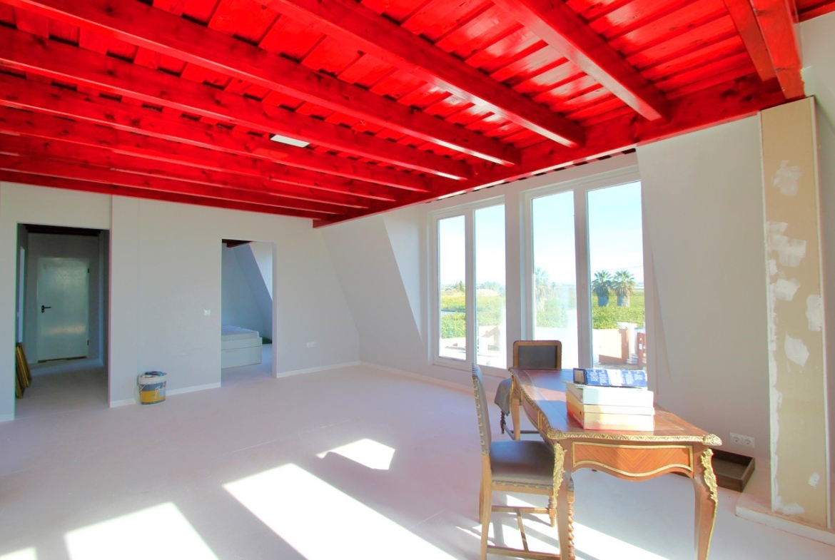 A total built surface area above ground of 429 m2, of which 190 m2 is currently the surface area which is finished, this area distributes over;2 living rooms, a separate kitchen, 3 bedrooms, 2 bathrooms, an additional 4 bedrooms can be made over the 240 m2 remaining surface area under roof