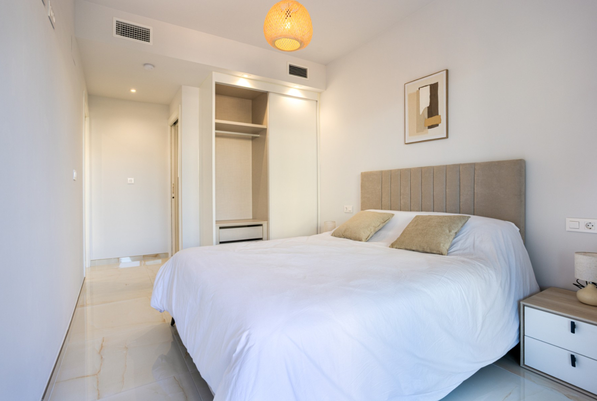 Discover this bright and modern second-floor apartment in a contemporary new-build project in Orihuela Costa, less than six months old! Designed for maximum comfort, it combines clean lines, open spaces, and modern finishes, creating a sense of space and well-being in every corner.