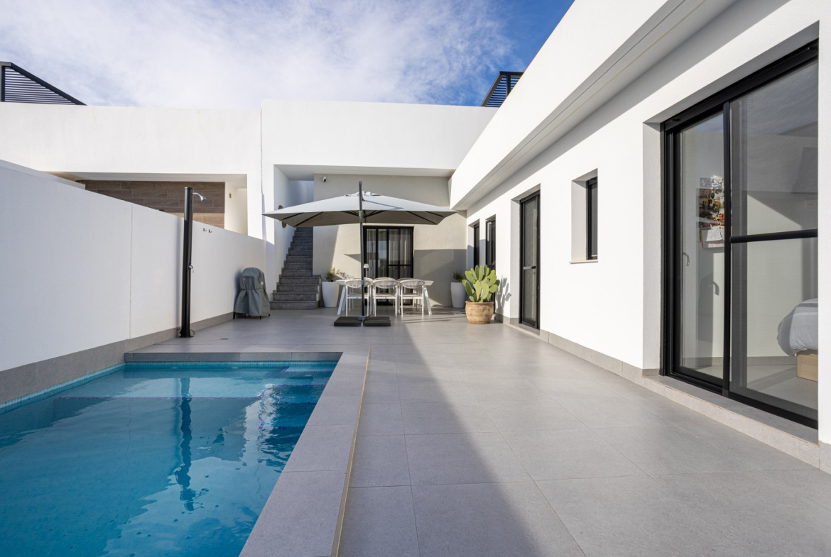 Built on a 151.71 m² private plot, the property has 85 m² of constructed space, all on one level, making it practical, accessible, and easy to maintain. The villa is designed to make the most of natural light thanks to its East orientation, ensuring bright interiors throughout the day.