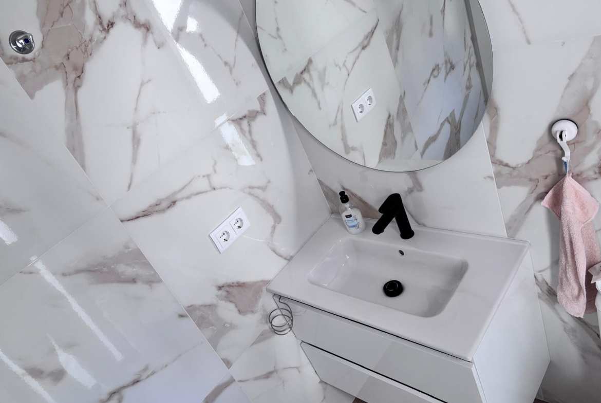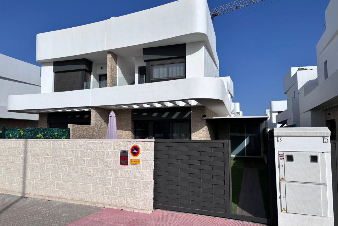 Outside, the villa continues to impress. The private plot features convenient off-road parking with a carport, along with a useful storeroom and a separate utility/washing room, ensuring practicality without compromising on style. The outdoor space offers excellent potential, with ample room to create your own private swimming pool—perfect for making the most of the sunny climate.
