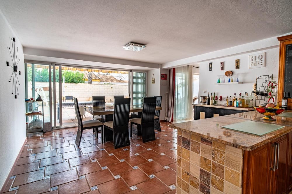 The villa has a built surface area of 245 m2 which distributes over a large living room with open fireplace with direct access to the garden