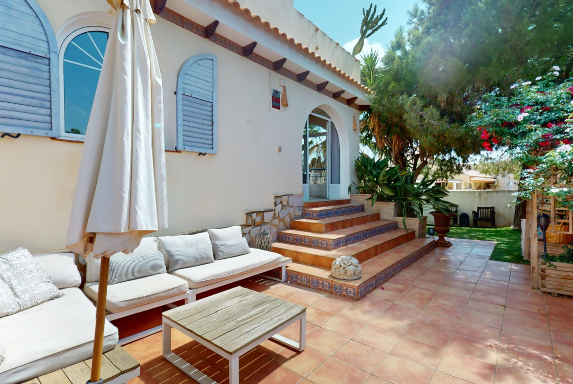 This spacious and move-in ready villa in Orihuela Costa offers everything needed for comfortable living on the Costa Blanca. The property features five full-sized bedrooms and three complete bathrooms, including a luxurious bathroom with jacuzzi. Spread over multiple levels, the villa offers bright, open living spaces, a fully equipped kitchen, and several lounge areas.