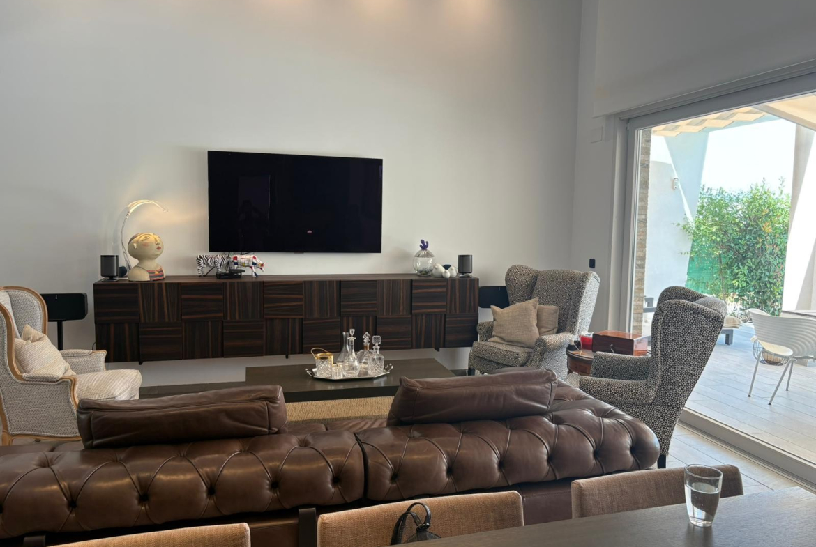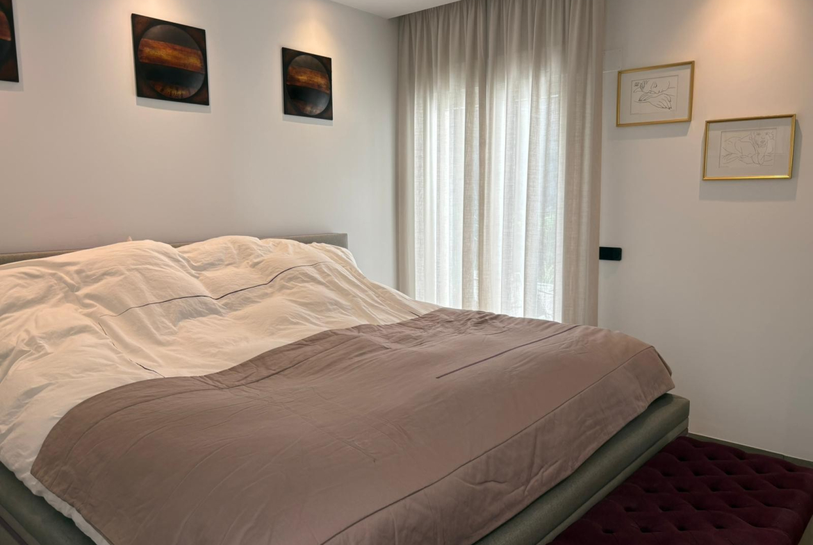 The villa offers 2 spacious bedrooms, 2 sleek bathrooms with underfloor heating, a guest toilet, and an open-plan living area filled with natural light. A third room is currently used as a dressing room or office but can easily be converted into an extra bedroom.