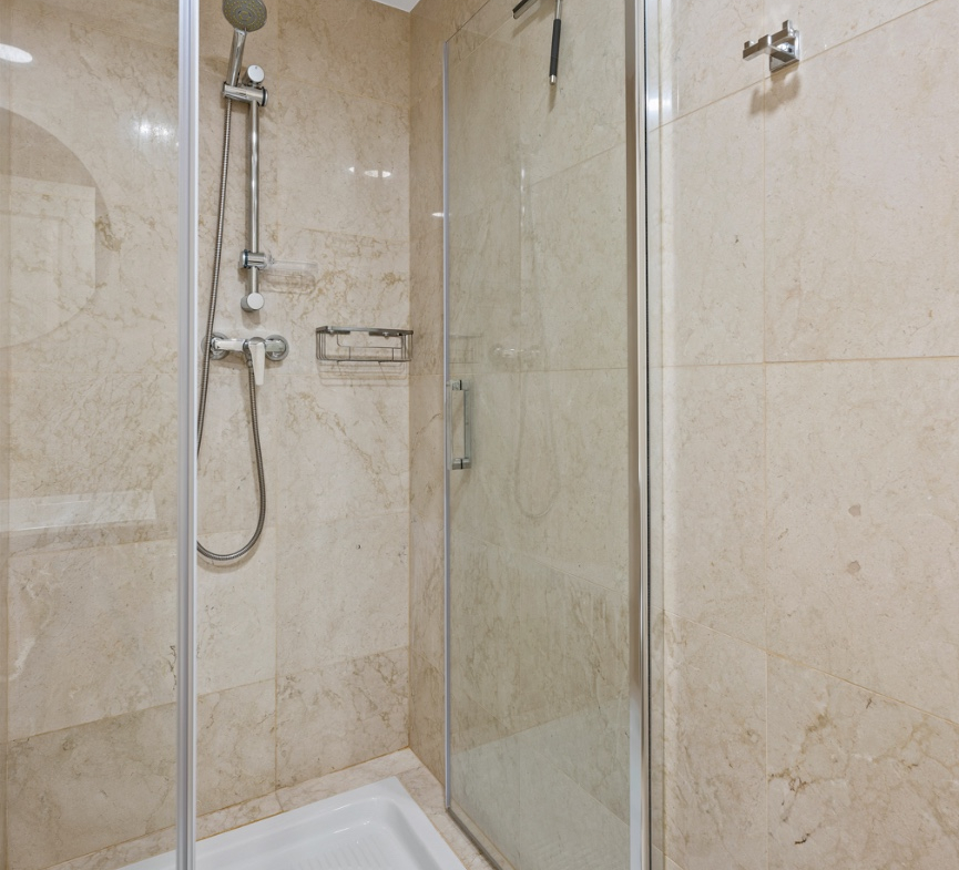 The apartment features two comfortable bedrooms and two modern bathrooms, one of which is en-suite with a walk-in shower. The property is offered fully furnished and ready to move in. The open kitchen has been recently completely renovated and is equipped with high-quality Bosch appliances. The entire home has been tastefully finished with great attention to detail and high-quality materials.