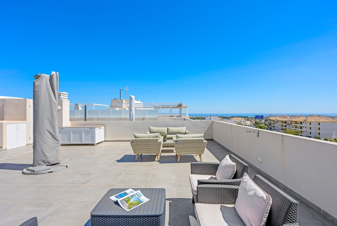 Discover this beautiful penthouse in a recent new-build development located in the sought-after area of Campoamor, Orihuela Costa, specifically close to Villamartín. This privileged location is surrounded by three excellent golf courses (Villamartín, Las Ramblas and Campoamor) and offers stunning distant sea views, while shops, restaurants and all amenities are within walking distance.