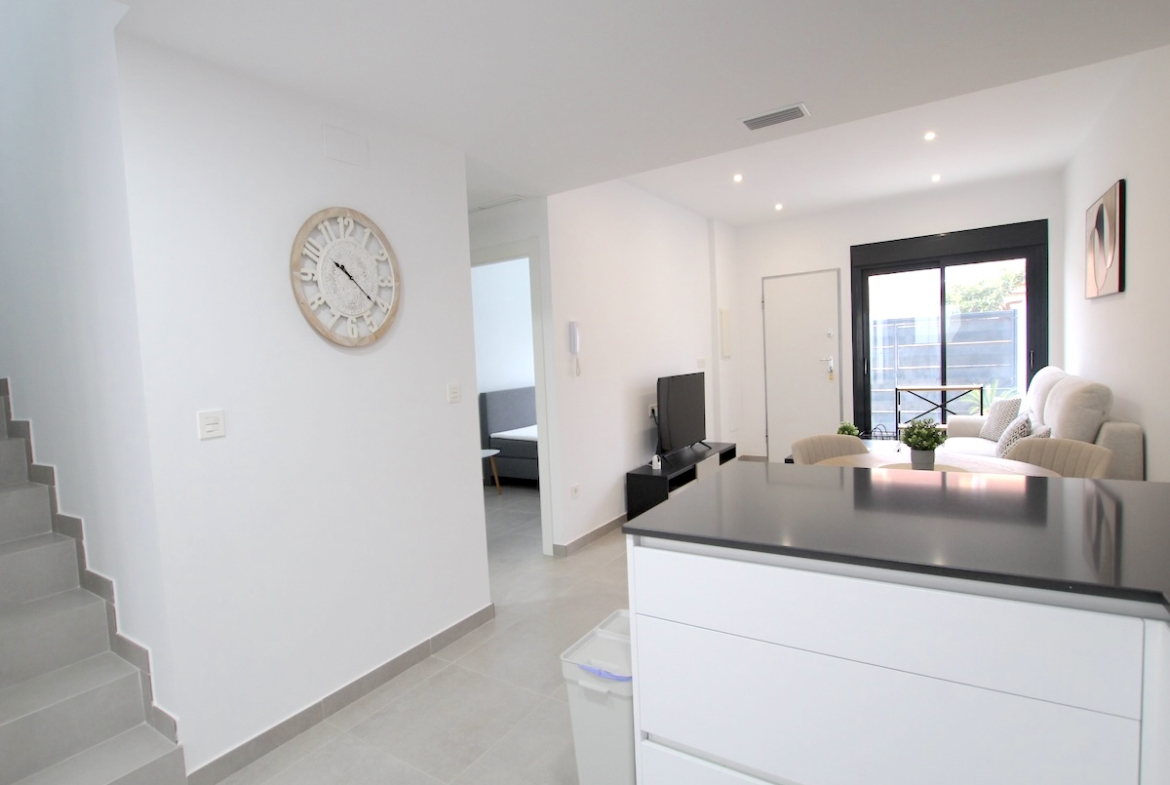 Experience modern Mediterranean living in this stunning 3-bedroom, 3-bathroom attached villa, perfectly situated in the sought-after coastal town of Pilar de la Horadada. Built in 2023, this contemporary home combines elegant design, comfort, and convenience—just a short stroll from the vibrant town centre and less than a 10-minute drive to the golden beaches and the renowned Lo Romero Golf Course.