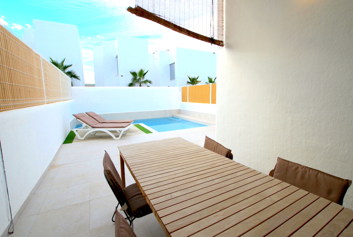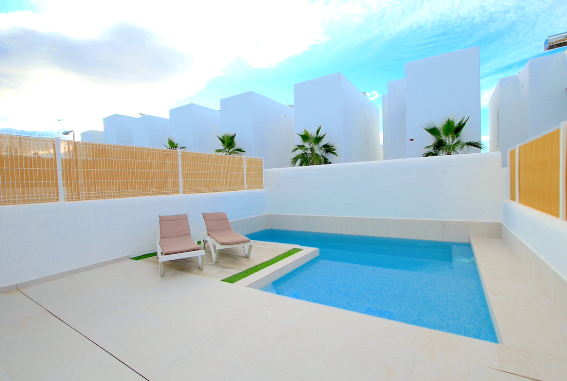 The plot of the villa spans 180 square meters and is meticulously designed for easy maintenance, ensuring that your living experience is as hassle-free as possible. There’s off-road parking, plenty of sunny and shaded areas to enjoy, low maintenance gardens, plus your very own swimming pool!
