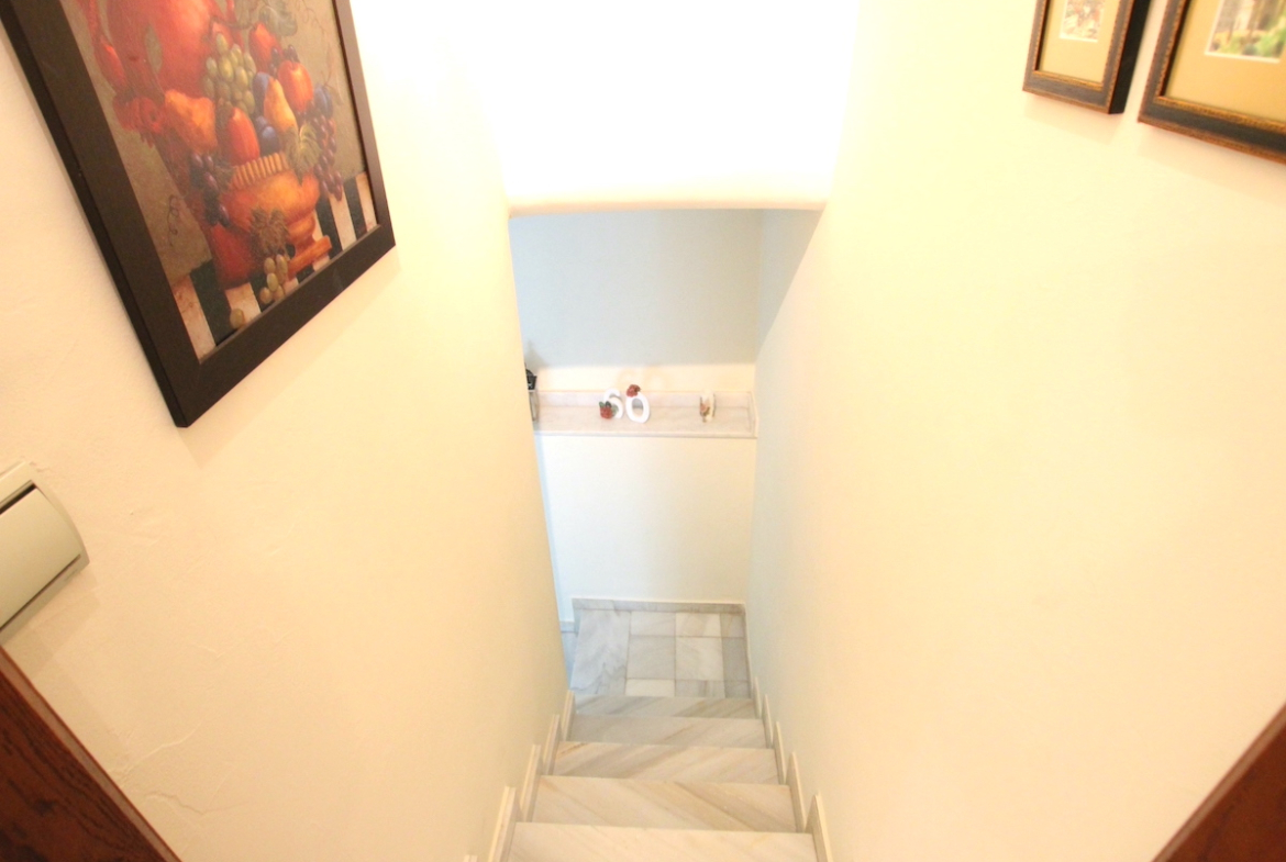 Internal stairs provide access to the lower level. Initially designed as a garage, this area has been transformed by the owners into a second lounge/seating space, complete with a kitchen.