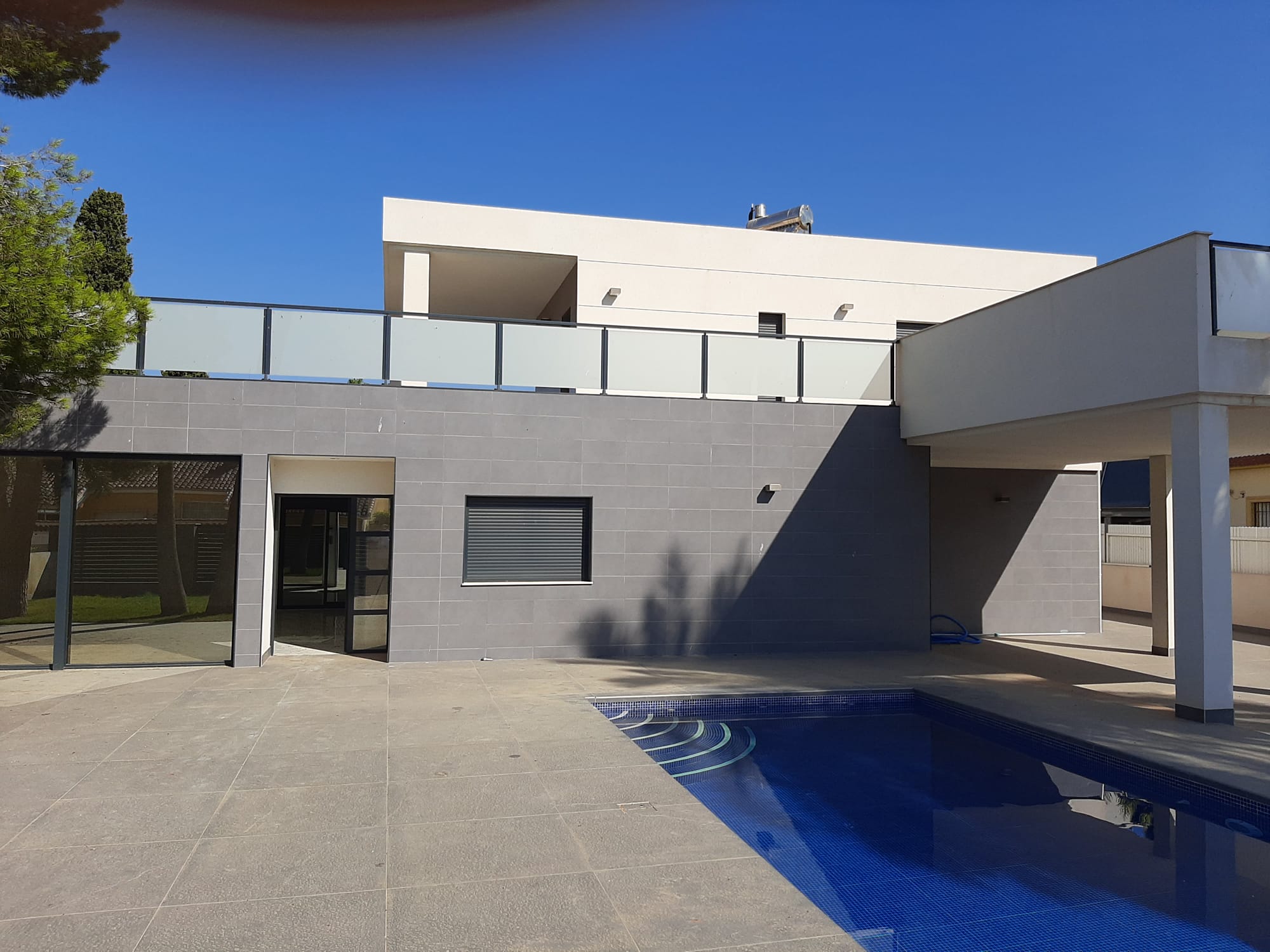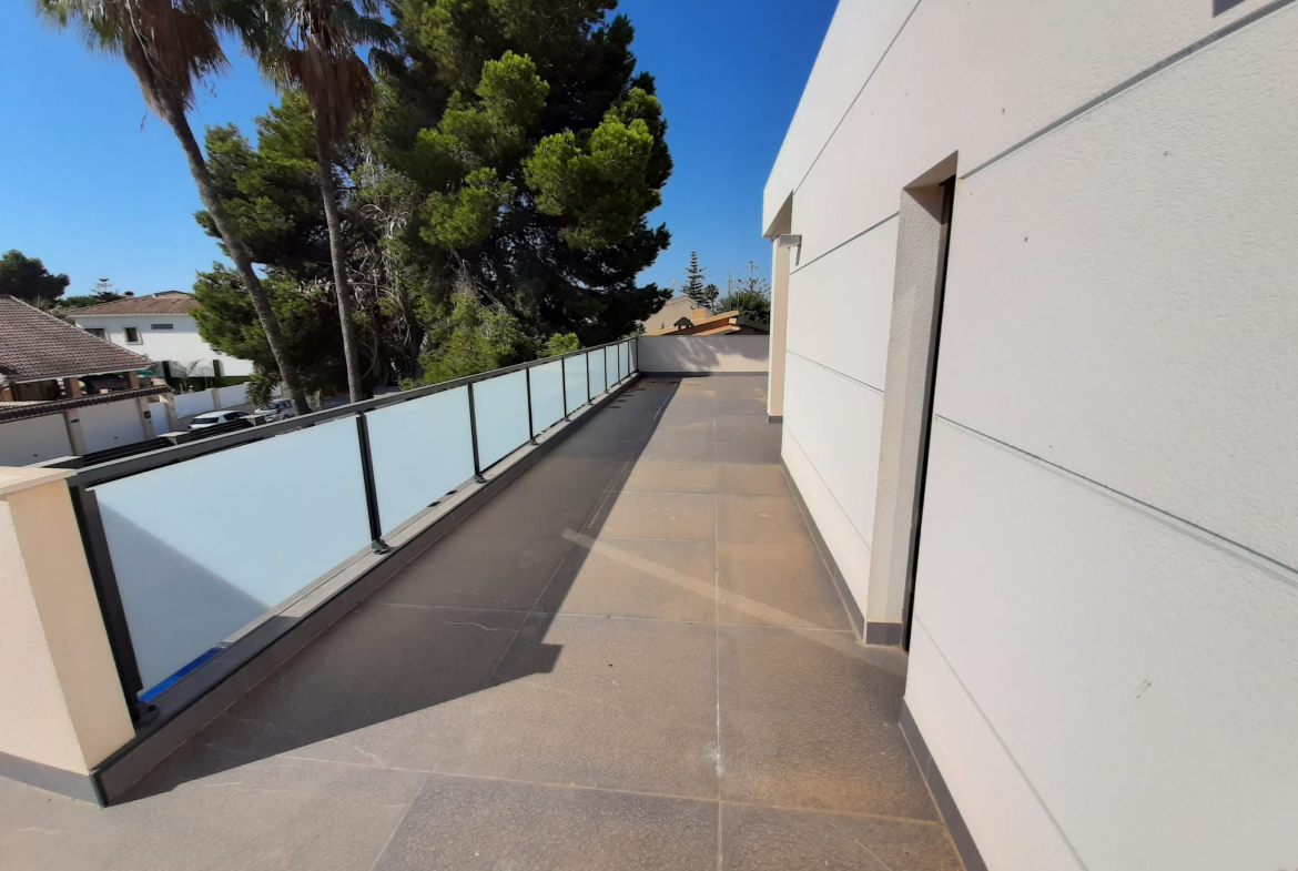 Detached villa in Dehesa de Campoamor (Orihuela Costa) 850m2 plot, 250m2 property, 200m2 solarium. South/East facing. 700 metres to the magnificent beaches of Campoamor . 4 bedrooms, 3 bathrooms, large living-dining room, kitchen with open island, large solarium with access to different outbuildings, prepared for barbecue installation, A/C throughout the house, central heating, electric blinds with aluminium windows and doors, private swimming pool, plot in perfect condition, marble floors, high quality throughout the property At the entrance, there is a large open plan living room with kitchen and large windows with lots of natural light. On the ground floor there are also three bedrooms and two bathrooms: two bedrooms and a bathroom with entrance from the corridor and a double bedroom with dressing room and bathroom. On the first floor there is also a very spacious bedroom with its corresponding dressing room and bathroom with access to the very large solarium and beautiful views, which also has a sink and is prepared for the barbecue installation.