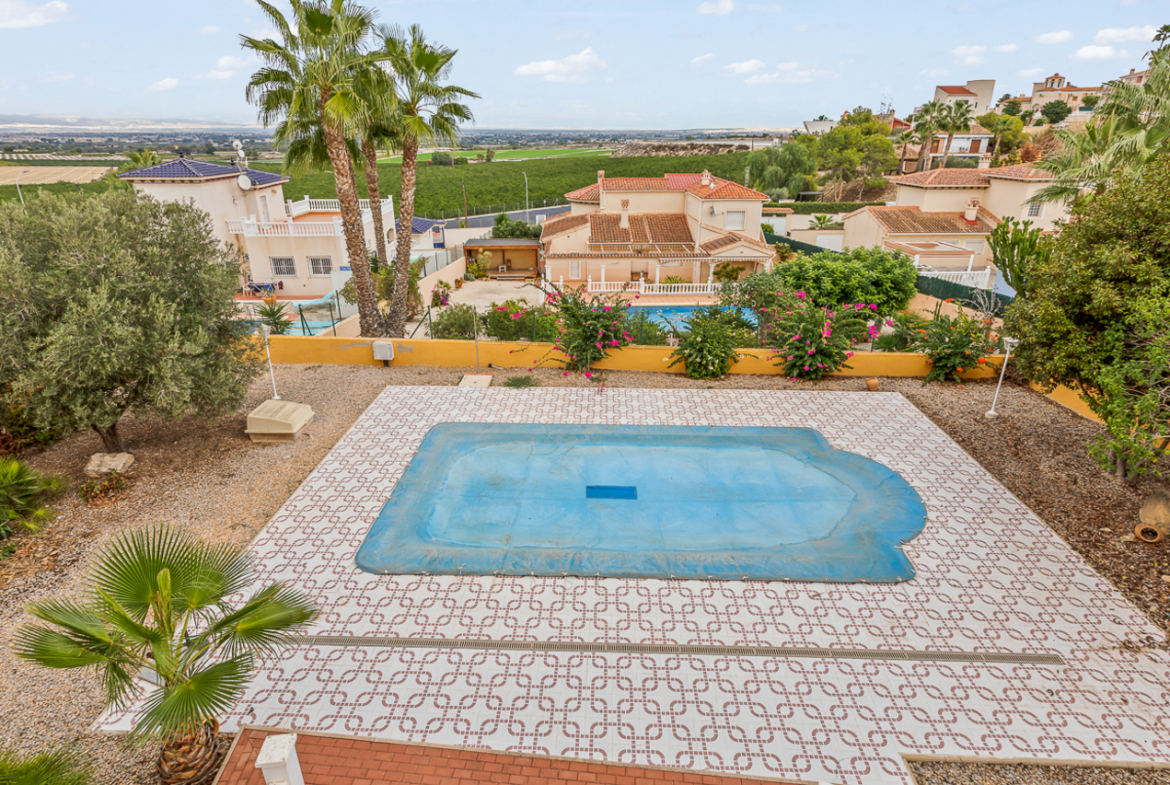 Home Costa Blanca are pleased to present this superb detached villa in the Urbanization of Lomas de La Juliana, located in the Costa Blanca South Region. This peaceful and well maintained urbanization is very popular due to its fantastic surrounding’s and view’s, right by the tennis club with many different sport facilities, fitness classes, outdoor pool and bar/restaurant. This villa is surrounded by a plot of land of about 1040 m2, with its own private pool, and a large garden that wraps around the villa. As you enter the property you will find the kitchen on your right with a separate utility room, the lounge/ dining room with access to the first balcony with the most outstanding panoramic views of the surrounding area. On this floor you also have a W.C and the Master Bedroom with En-Suite with its own private access to the balcony also. Downstairs you have a another bedroom with En-Suite along with a family bathroom to be shared with the other 2 double bedrooms. Access to the garage, and another living room that opens up to the second terrace and stairs to access the pool and large garden. This villa is a top quality TM construction. Only a short drive or walk to the lovely village of Algorfa, or la finca commercial centre for all your amenities. Just across the road from the famous 5* La Finca Golf Resort. A 15-minute drive to the award-winning beaches of Guardamar. 35 minutes to Alicante airport or 45 minutes to Murcia airport