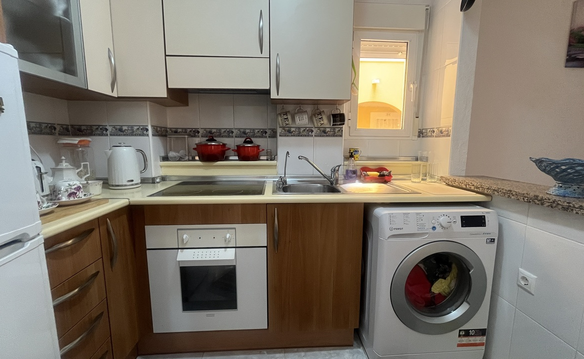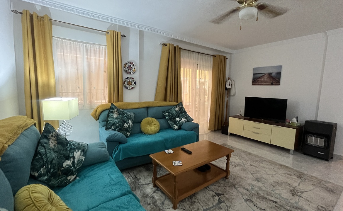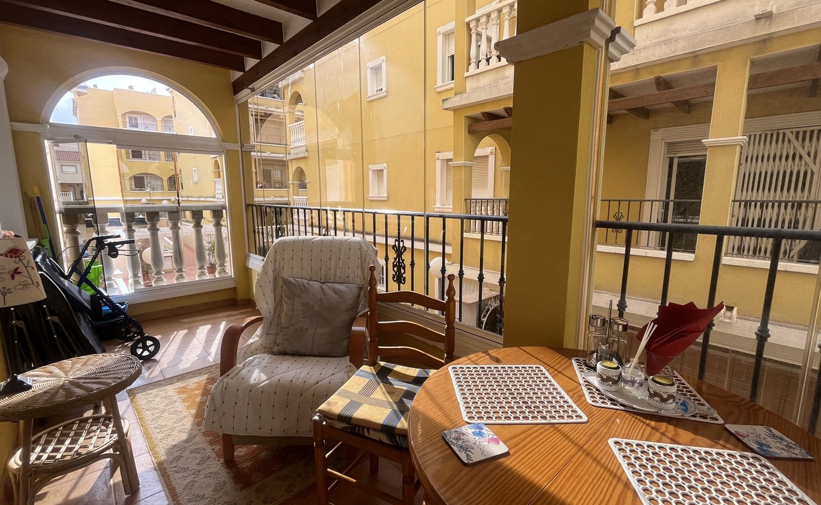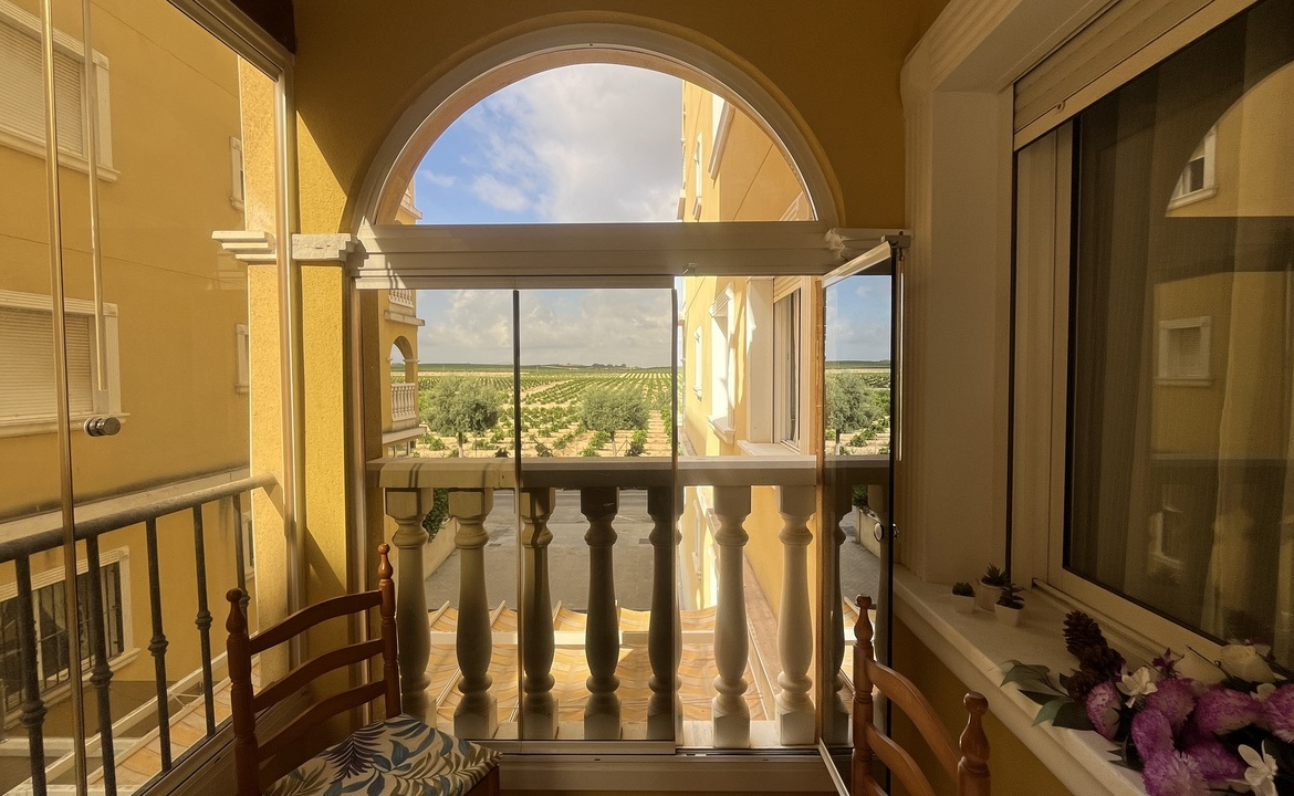 This well-presented 2 bedroom, 1 bathroom apartment is perfectly located in the sought-after Fontana 1 complex in Algorfa, just a short walk to local shops, bars, restaurants, and all village amenities.Situated in a block with a lift for easy access, the apartment boasts plenty of natural light thanks to its many windows and a glazed-in balcony that slides open, ideal for enjoying the sunshine year-round.Inside, you’ll find a spacious living and dining area, a separate kitchen with a window, a bathroom with natural ventilation, and two double bedrooms, making it a comfortable home for permanent living, holidays, or investment.The property’s central location and practical layout make it an excellent opportunity in Algorfa.Alicante airport is under a 40 min drive.The award winning blue flag beach of Guardamar is under a 15 min drive.La finca golf ressort under a 5 min drive.