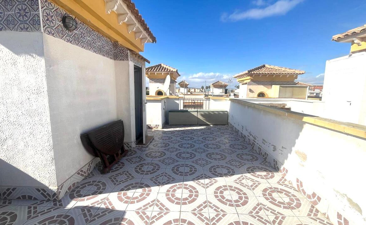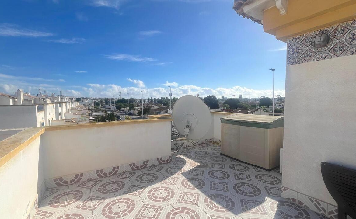 Fantastic Corner Townhouse in Jardin del Mar XIII, TorreviejaDiscover this exceptional corner plot townhouse located in the highly sought-after urbanisation of Jardin del Mar XIII in Torrevieja. Perfectly positioned in a prime area, this home combines comfort, style, and convenience — ideal for both permanent living and holiday escapes.This charming property offers 3 spacious bedrooms and 2 modern bathrooms, including a master bedroom with its own private terrace. The home features a bright and separate kitchen, fully equipped and functional, as well as fitted wardrobes providing ample storage space throughout.Enjoy the Mediterranean lifestyle with an expansive private garden, perfect for outdoor dining, relaxation, or entertaining guests. For those who love the sun, a private solarium offers additional outdoor space to soak up the warm Spanish weather. The property also benefits from solar panels, enhancing energy efficiency, and air-conditioning for year-round comfort.Residents of Jardin del Mar XIII enjoy access to an outstanding communal pool surrounded by beautifully maintained gardens — an ideal place to unwind and socialise.Located just a short drive from the stunning beaches of Torrevieja and within close proximity to supermarkets, a major shopping centre, restaurants, bars, and all essential amenities, this property truly offers the best of coastal living. Conveniently situated not far from Alicante airport, it ensures easy travel connections.