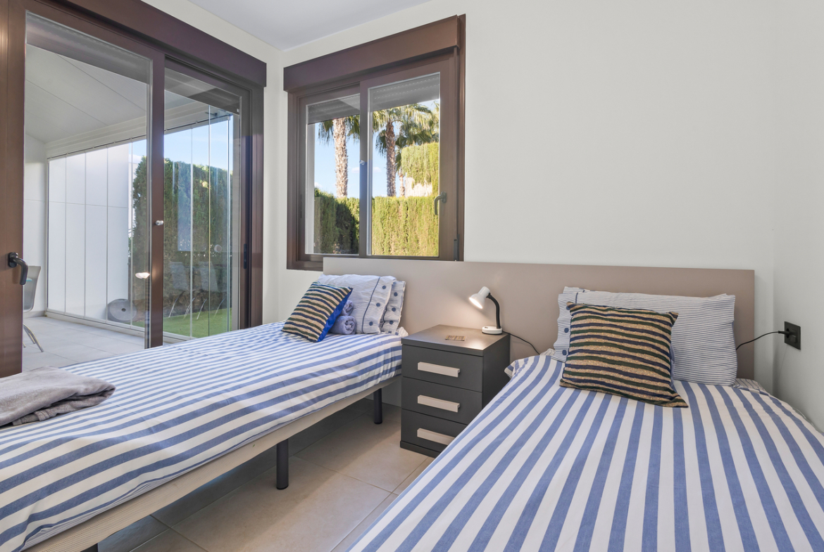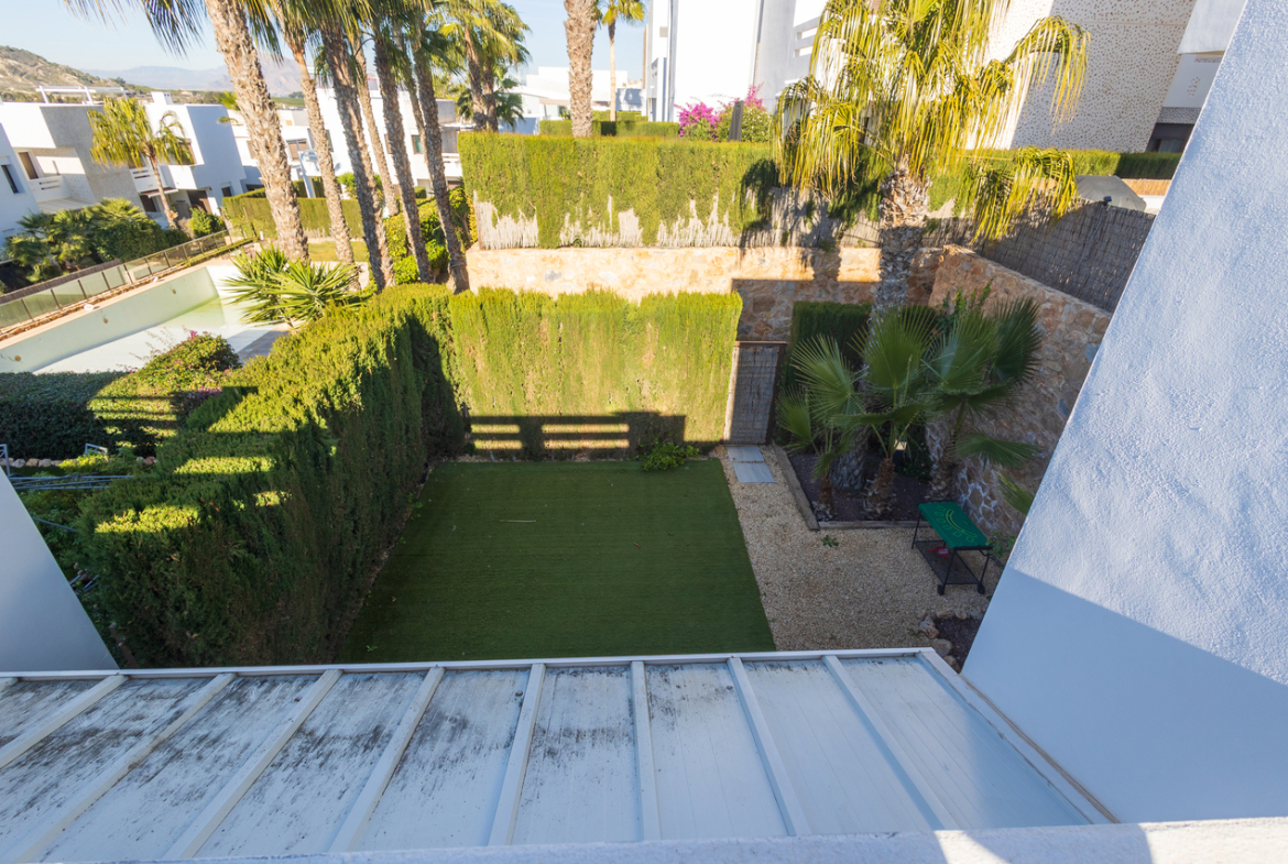 We are delighted to present this stunning semi-detached property, ideally located within the highly sought-after La Finca Golf urbanisation. The home is thoughtfully distributed over two levels and offers a bright, open-plan design. The ground floor features a spacious living and dining area with a modern open-plan kitchen, seamlessly connecting the front and rear gardens, perfect for indoor-outdoor living. Also on this level are two generously sized bedrooms and a family bathroom, making it ideal for guests or single-level living. Upstairs, the property boasts a large master bedroom complete with an en-suite bathroom, a private solarium offering beautiful open views, and a substantial storage room. All bedrooms are equipped with built-in wardrobes and air conditioning, ensuring year-round comfort. In total, the property offers three spacious bedrooms and two modern bathrooms. To the rear of the property, a sunroom with glass curtains provides additional living space, perfect for enjoying the home in all seasons. The south-facing living area is filled with natural light throughout the day, creating a warm and welcoming atmosphere. From the outdoor spaces, you can enjoy open countryside views, while just a short walk away is a large communal swimming pool, ideal for relaxation. Golf lovers will appreciate the immaculately maintained golf course right on the doorstep, as well as the tranquil yet vibrant lifestyle the area offers. La Finca Golf is renowned for its peaceful surroundings, lush landscapes, and excellent access to local amenities, including shops, restaurants, and essential services, all within easy reach. This property represents an exceptional opportunity to enjoy comfort, space, and lifestyle in one of the area’s most desirable locations.