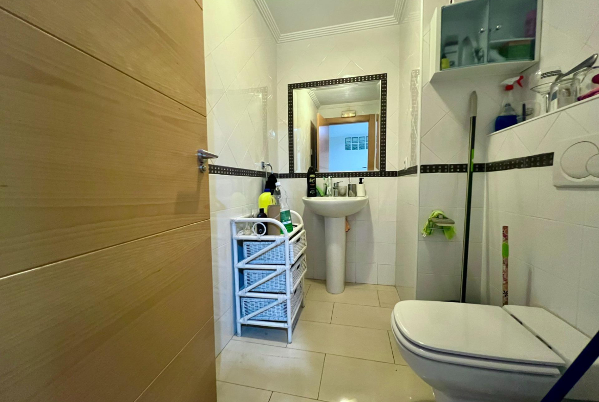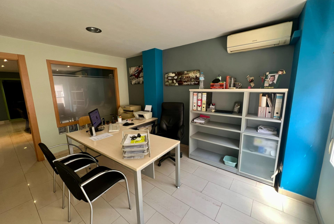 We present this refurbished commercial premises, located on a mezzanine floor in the centre of Orihuela. Perfect for offices, with 120 m2 built, divided into several rooms with office desks. Two of the rooms have large windows to the exterior. It has a toilet and a small storage room. All the lights are with porthole spotlights, which gives the spaces more amplitude and luminosity. It was totally refurbished in 2006 including electric and plumbing. ~~It also has air conditioning and split wall heating installed, and fire extinguishers already installed for greater security. It is sold semi furnished. ~