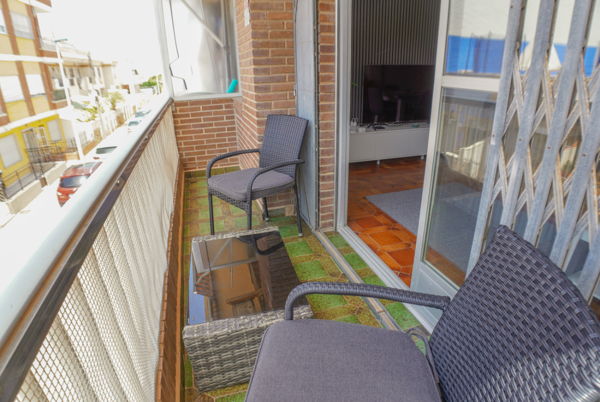 We are delighted to offer this beautifully renovated, South-West facing, first floor apartment, ideally located just 200 metres from the sea in San Pedro del Pinatar.This spacious apartment consists of a large living and dining area fitted with air conditioning and sliding doors out to a private balcony, which is ideal for relaxing with a cool drink on a hot day. There is a large, fitted kitchen and utility area with washing machine and boiler. There is a large master bedroom and 2 further double bedrooms. There is also a family bathroom with bath, shower, sink and bidet, and a further bathroom with toilet and sink.Renovated to a very good standard, this apartment is offered fully furnished and has been very tastefully decorated as you will see in the photographs. The apartment also benefits from having a communal solarium with views of the sea and surrounding area. There is also a private storage room which is ideal for sunbeds etc.San Pedro del Pinatar is in the heart of the Costa Colida, situated ideally between the Mar Menor and the Mediterranean Sea. Just a 2-minute walk from the property and you will reach the beach-front where you will find a host of shops, cafes, bars and restaurants to choose from making this an ideal holiday home, permanent residence or investment opportunity.With the property being sold with all furnishings it is “key ready” to use for whatever purpose you decide.Properties in this area, and in this condition do not stay on the market for long, so for more information, or to arrange your viewing of this fabulous apartment, contact us now.