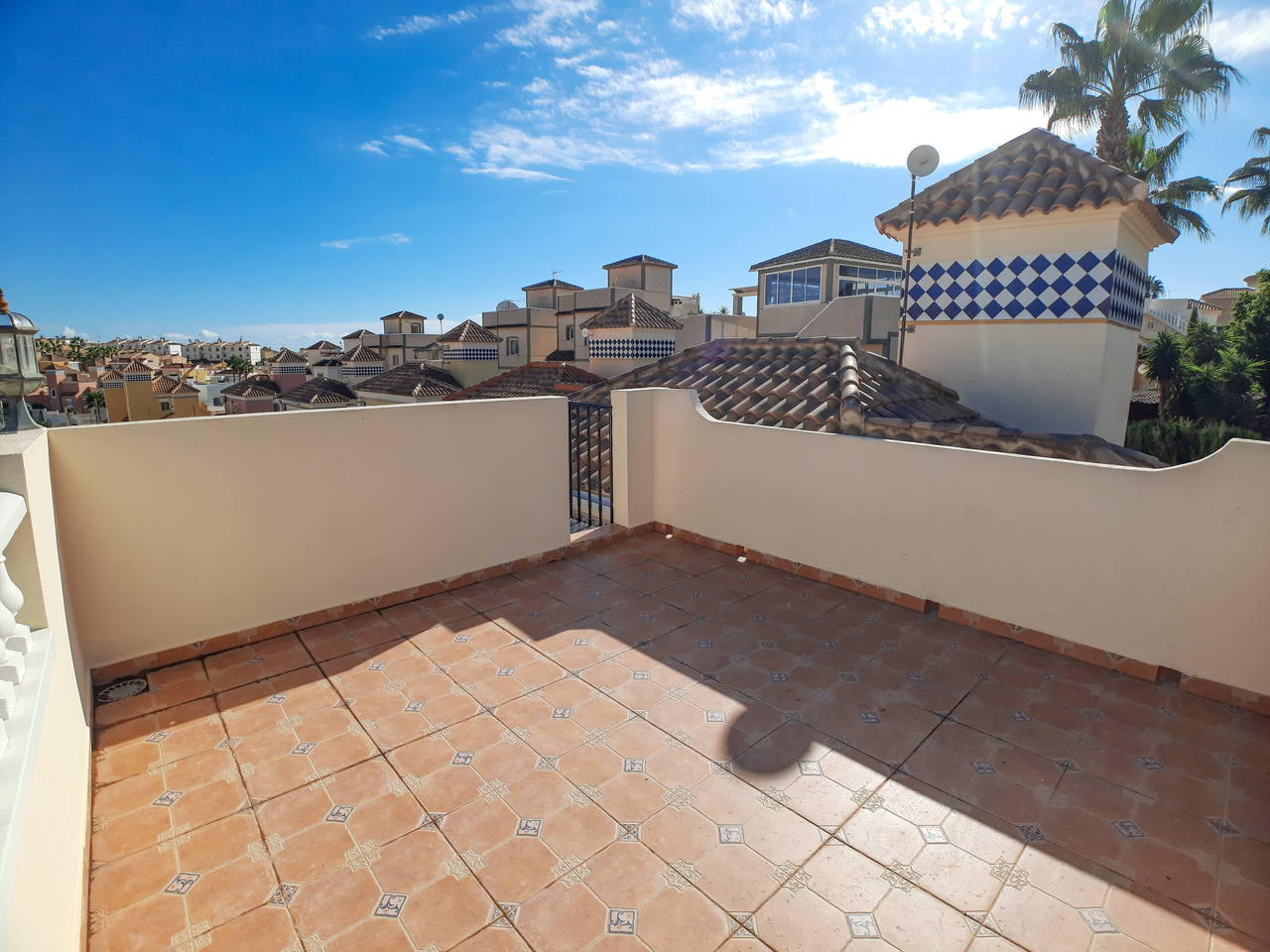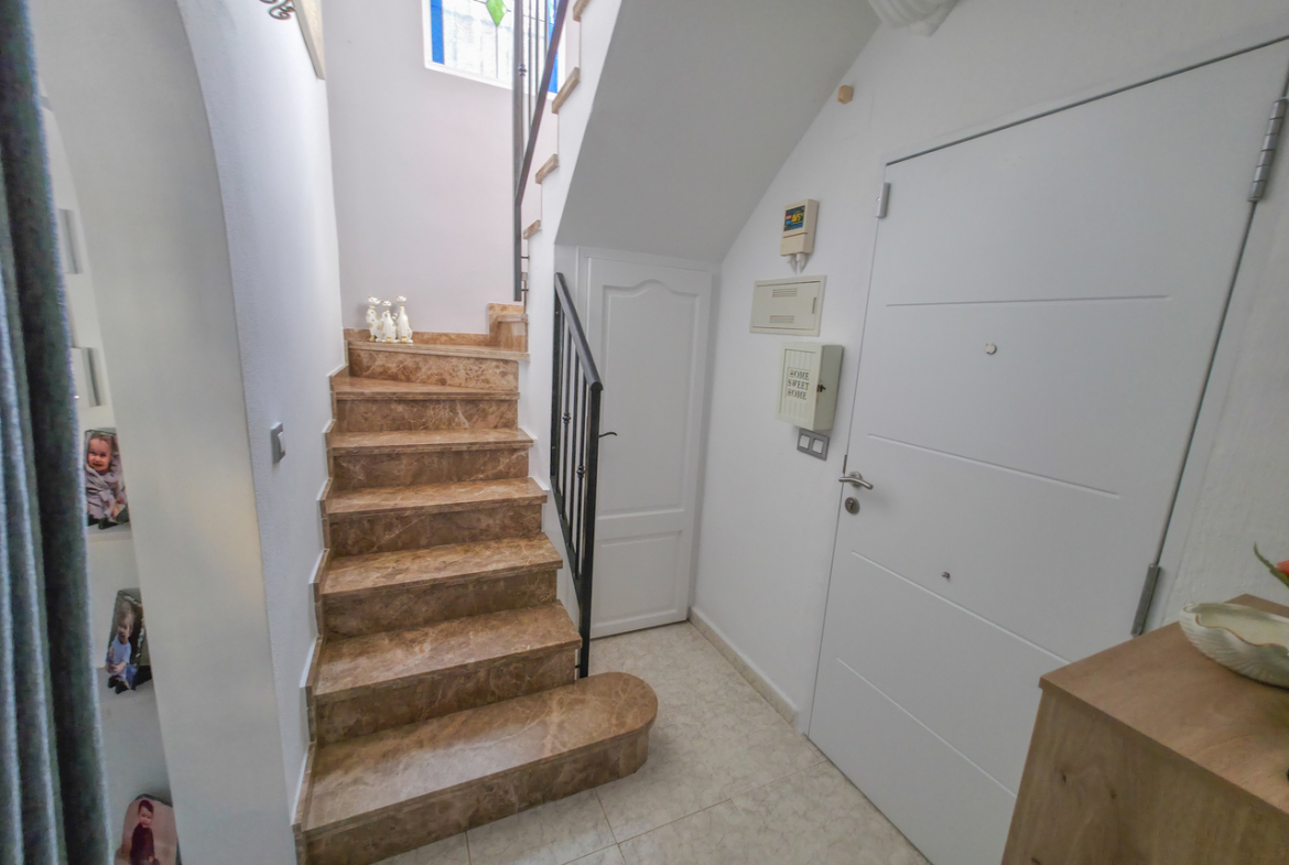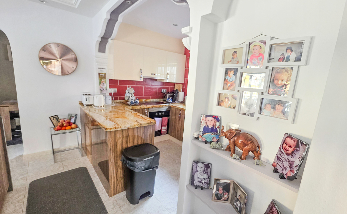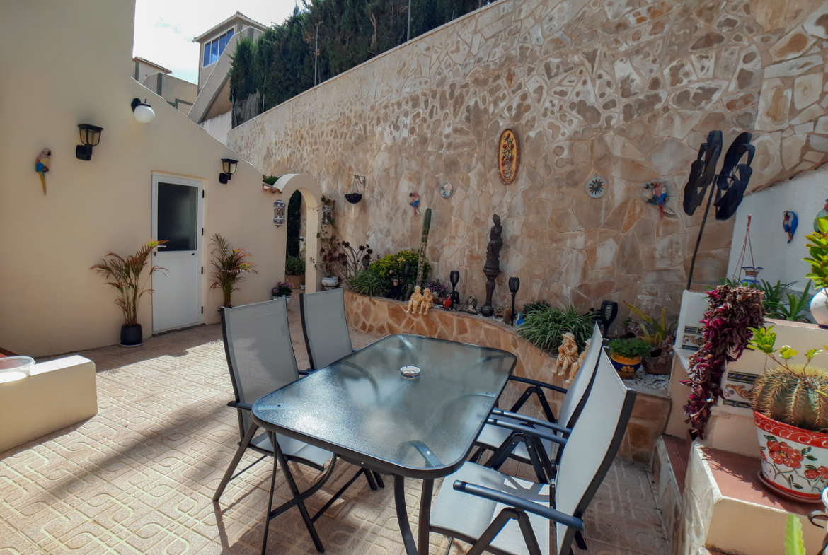 We are delighted to introduce you to this stunning detached villa located in El Galan, on the outskirts of Villamartin. This 3-bedroom, 2-bathroom villa is offered in exceptional condition and has air conditioning fitted throughout the home. There is a large selection of bars and restaurants including a 24-hour supermarket within walking distance from the property and within a 5-minute drive you can find the ever-popular Villamartin Plaza, La Fuente Commercial Centre and a choice of 3 superb Golf Courses.On entering the property into the bright hallway, you are greeted by the luxurious and spacious lounge with access out onto the front terrace, an open plan modern kitchen complete with marble worktops and a large bright dining room. Also on this level is a double bedroom with fitted wardrobes, a modern family bathroom with walk in shower and a storage cupboard. Moving upstairs there is a modern family bathroom and a further 2 double bedrooms with fitted wardrobes, both with separate access to the balcony area and rooftop solarium, where you can sunbathe all day long. The villa is offered part furnished (subject to offer).Outside, there is a huge private patio area with plenty of space for outside dining and entertaining friends and family in the glorious Spanish sun!!! Moving through the archway you arrive in the villa´s very own ‘Secret Garden’ complete with Jacuzzi hot tub, pergola and seating area, laid with artificial grass, providing the perfect ‘chill out’ zone to relax and sunbathe with a glass of wine or two. You have plenty of scope should you want to install your own private pool. There is also a storage room of 6m2 that could make an ideal workshop area, a covered driveway and wrap-around garden to the front of the villa.The current owners have spared no expense in maintaining this stunning home and we anticipate interest to be high so to avoid any disappointment, please contact us for more information, request a video or book your viewing.