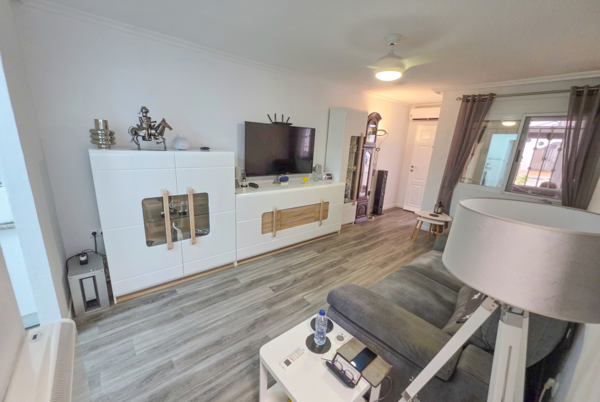 We are delighted to offer this stunning ground floor apartment in ever-popular Vistabella Golf, Entre Naranjos. This superb apartment has been completely renovated and modernised to offer a fresh, bright and modern look. To the front of the apartment, a large, tiled area offers good outside space and is currently used for private parking. There is also a charging point for an electric vehicle. A few steps lead to a glazed terrace which can be used as a dining area or an extension of the living area itself. There is additional storage space here too. Inside you will find a spacious living and kitchen area with additional pantry or laundry room to the rear which has also been renovated and fitted with a new roof including velux window. There are 2 generous sized double bedrooms, and a modern family bathroom complete with walk in shower. Other features of this beautiful home include air conditioning fitted in the living area, fully insulated flooring and walls, security camera and it is being offered for sale part furnished. The apartment also benefits from a communal pool and garden area which is conveniently located nearby the apartment itself. Community fees in this area are lower than average. Presented in excellent condition, this apartment comes ready to enjoy from day 1 and would make an ideal choice as either a holiday home, permanent residence or investment opportunity. Another benefit of this property is within just a few minutes’ walk you will find a selection of bars, restaurants, shops, pharmacy, coffee shops, beauty salons, gymnasium and a supermarket as well as the nearby Vistabella Golf Resort which has a beautiful golf course, driving range, putting area, padel courts and bowls. It also has the wonderful Terrazas Bar and Restaurant. Properties in this condition and location do not sit on the market for long so to avoid disappointment please contact us now to arrange your viewing which can be done in person or by video.