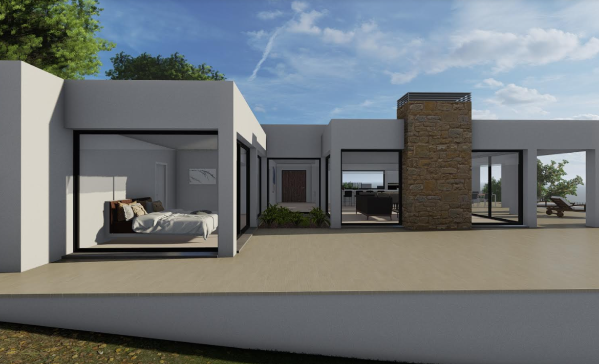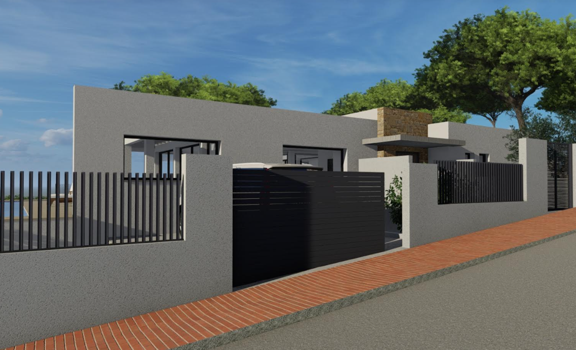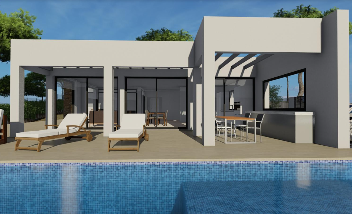 The villa has a very practical distribution and is spread over one level with 4 comfortable bedrooms and a spacious living room with direct connection to the fully equipped kitchen. The property has a large terrace and a beautiful south facing pool, creating a perfect place to enjoy. Using the best materials, the villa is designed with first quality standards. The house has air conditioning and underfloor heating system, integrated wardrobes and double glazing to guarantee the comfort of the home.