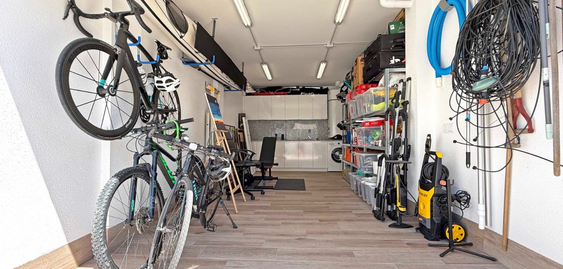 Private garage with custom storage cabinets. Opportunity to convert into a third bedroom with bathroom.