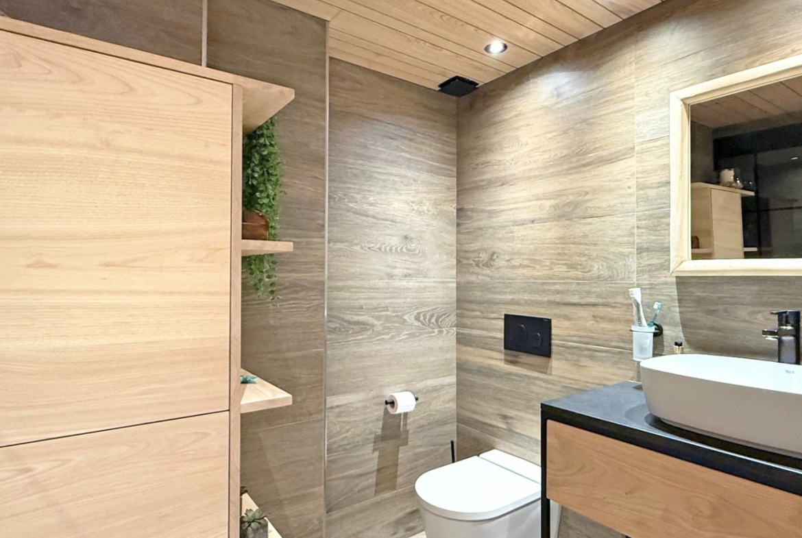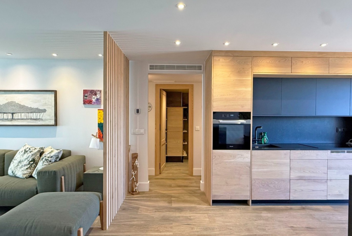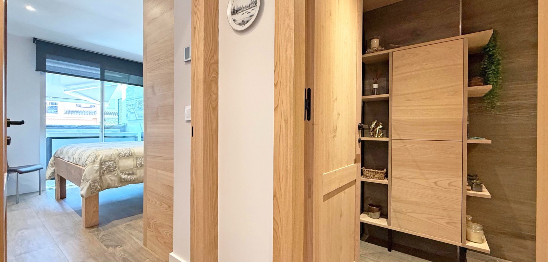 Inside, the apartment stands out with exclusive chestnut wood finishes throughout, a rare touch that adds warmth and sophistication. A luxurious jacuzzi invites you to relax in style, while air conditioning ensures year-round comfort.