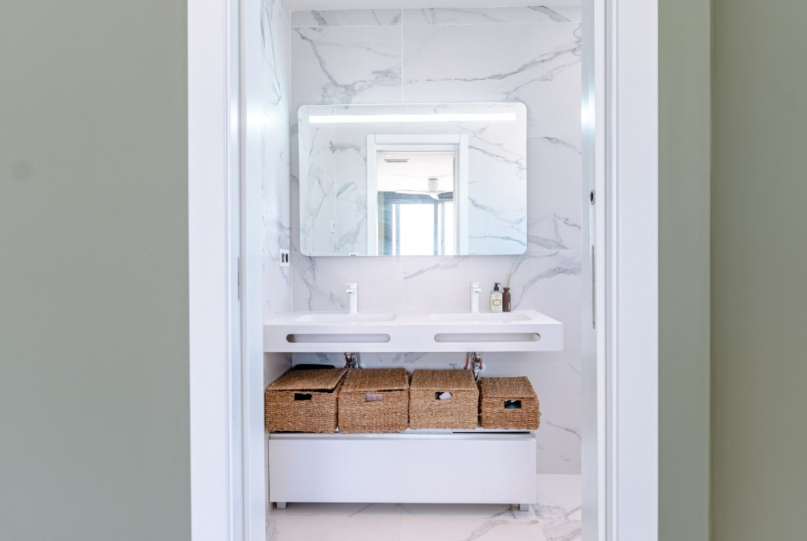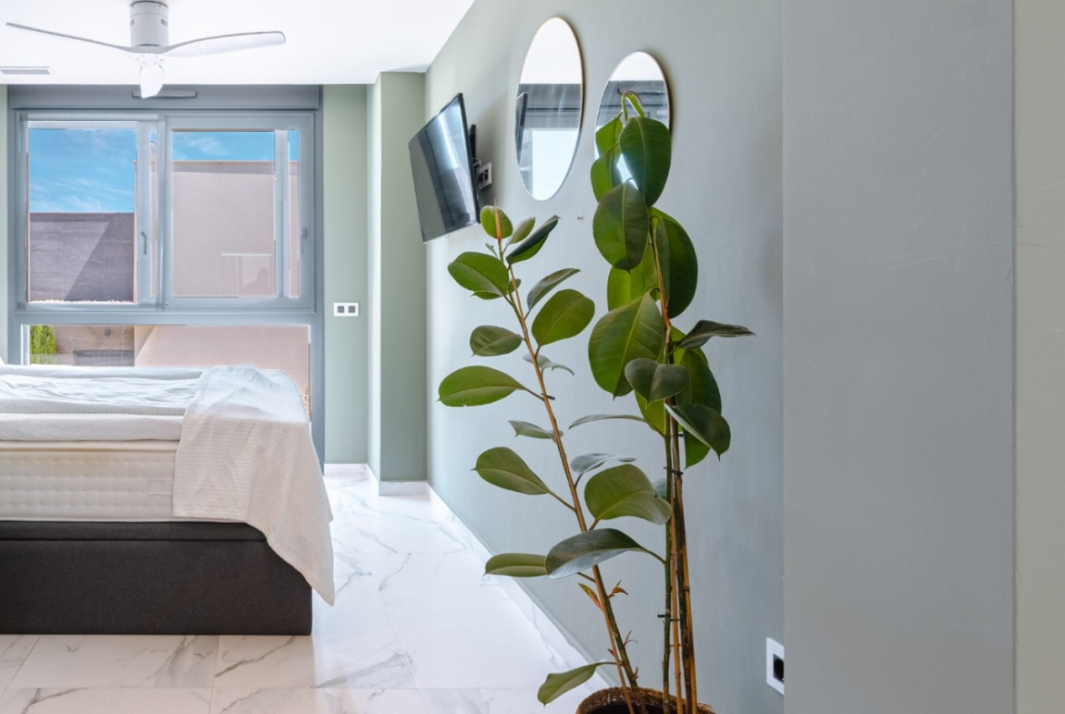 Stay cool during the warmer months with air conditioning throughout the villa. The meticulously landscaped garden and terrace provide serene outdoor spaces to unwind and soak in the Mediterranean sunshine.