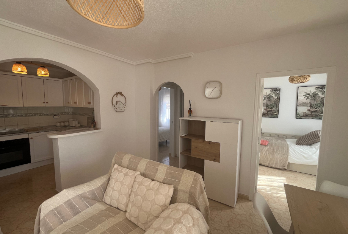 This attractive south-east facing 3-bedroom, 2-bathroom quad house is situated in the popular area of Punta Prima, Costa Blanca, and is offered for sale in very good condition. The property is being sold partly furnished and provides a bright, comfortable living environment ideal for holidays or permanent living.