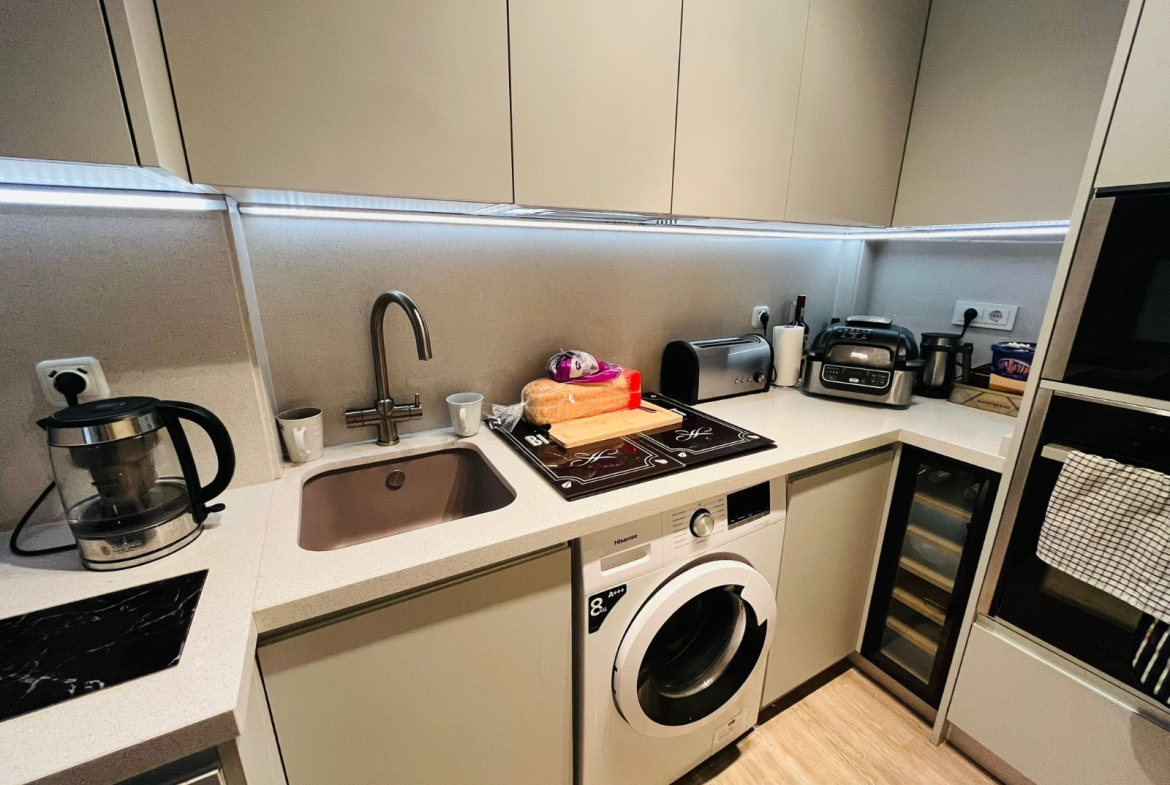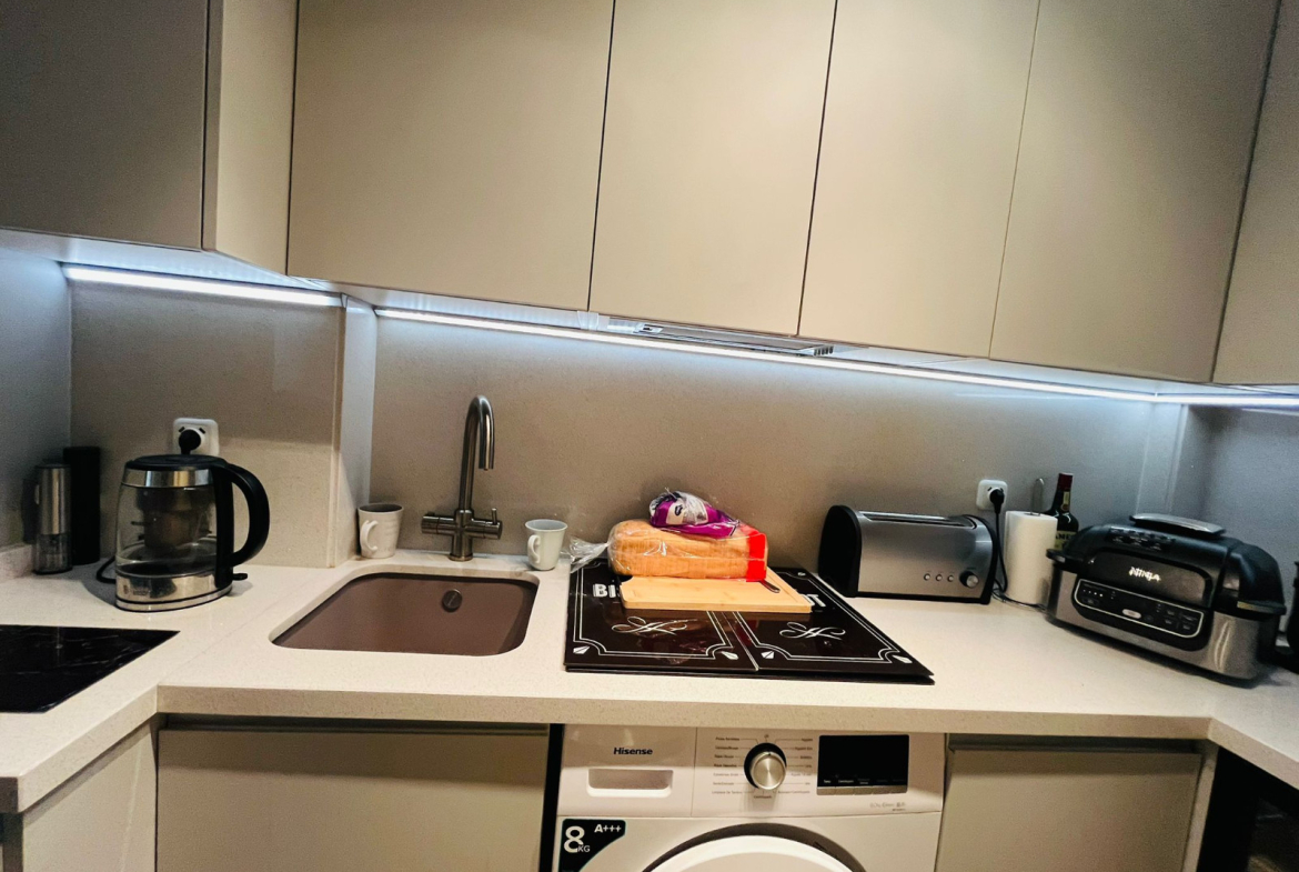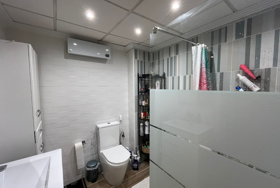 The home provides two well-proportioned double bedrooms, a light-filled living and dining room, and a sleek open-concept kitchen designed for everyday comfort. A major advantage is the expansive basement level (approx. 30 m²), which receives natural daylight and is currently arranged as a second living area. This flexible space could just as easily serve as a guest accommodation, office, hobby room, fitness area, or entertainment space.